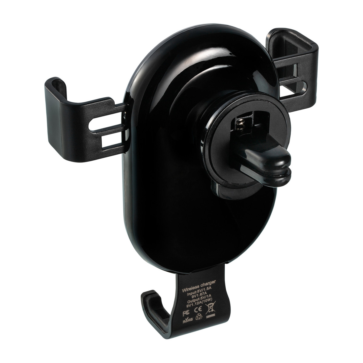 Drahtloses Laden des Smartphones geht auch im Auto. Wireless charging macht es möglich.Die praktische Ladestation zur Befestigung an den Lüftungsschlitzen schließt seine Arme automatisch bei Einlegen des Telefons. Auf der Werbefläche wirken gelaserte Logos durch Hinterleuchtung sogar bei Dunkelheit äußerst eindrucksvoll. Überhitzungs- und Überspannungsschutz. Eingangsstrom: DC5V/2.0A; 9V/1,67A; Ausgangsstrom (kabellos): DC5V/1.0A/5W; 9V/1,12A/10W - fast charge.1 Ladespule, 10W.
