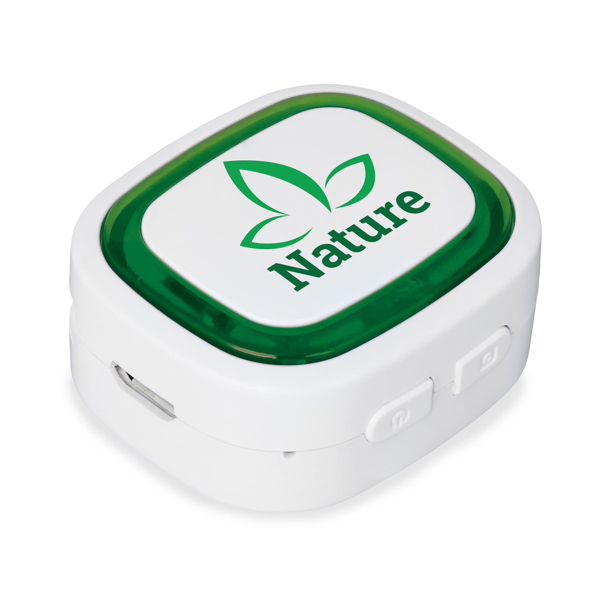 Der Bluetooth®-Adapter macht Stereoanlagen oder ähnliches zum Bluetooth®-Empfänger! Dazu verbinden Sie einfach den Adapter per Klinkenstecker mit dem zu verbindenden Gerät und stellen eine Bluetooth®-Verbindung zwischen den korrespondierenden Geräten her. Der umlaufende Farbring an der Werbefläche wird per LED hinterleuchtet.