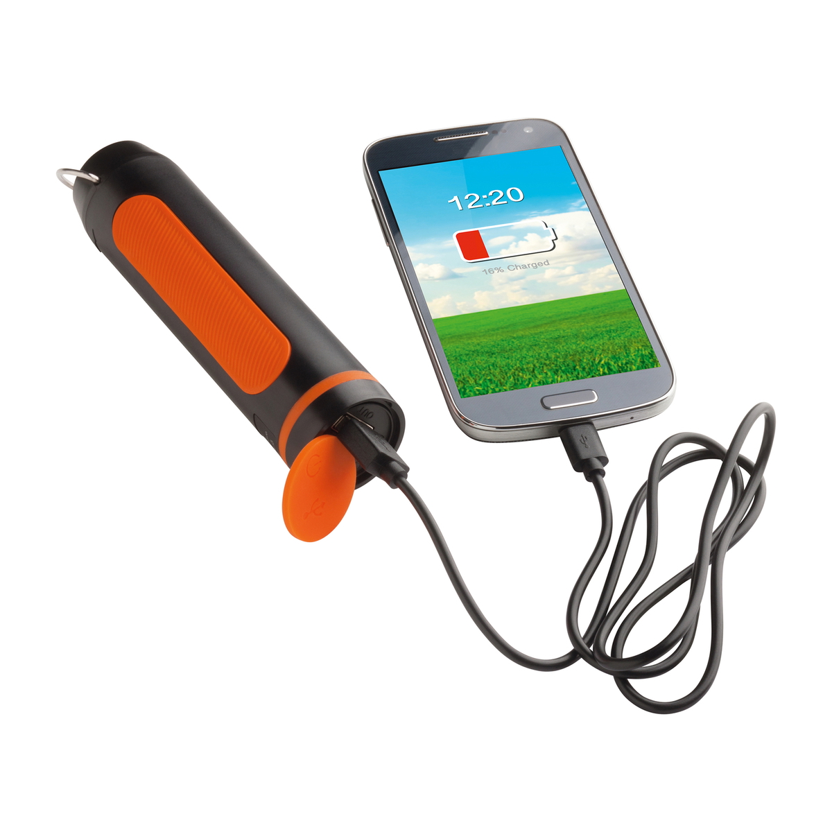 Abenteuerreisen mit Komfort: Die Campinglampe mit eingebauter Powerbank hat eine LED, mit 1 Watt/130-140 Lumen Leistung, hat drei verschiedene Lichtmodi, kann auf Blinken umgestellt und per Aufhänger am Zeltdach befestigt werden. Die Powerbank hat eine Kapazität von 2200 mAh. Der Ladestand kann am Gerät abgelesen werden. Inklusive USB an Micro-USB-Kabel.