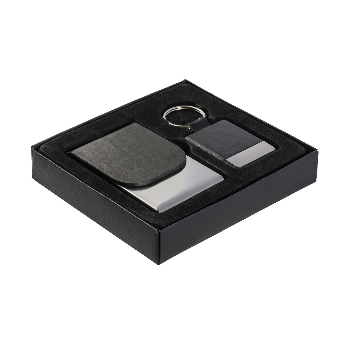 Wenn auch das Überreichen schon eine Freude ist… Das edle Geschenkset aus Schlüsselanhänger und Visitenkartenetuis ist mit einer Lasergravur eine meisterhafte und liebevolle Aufmerksamkeit für Kenner.