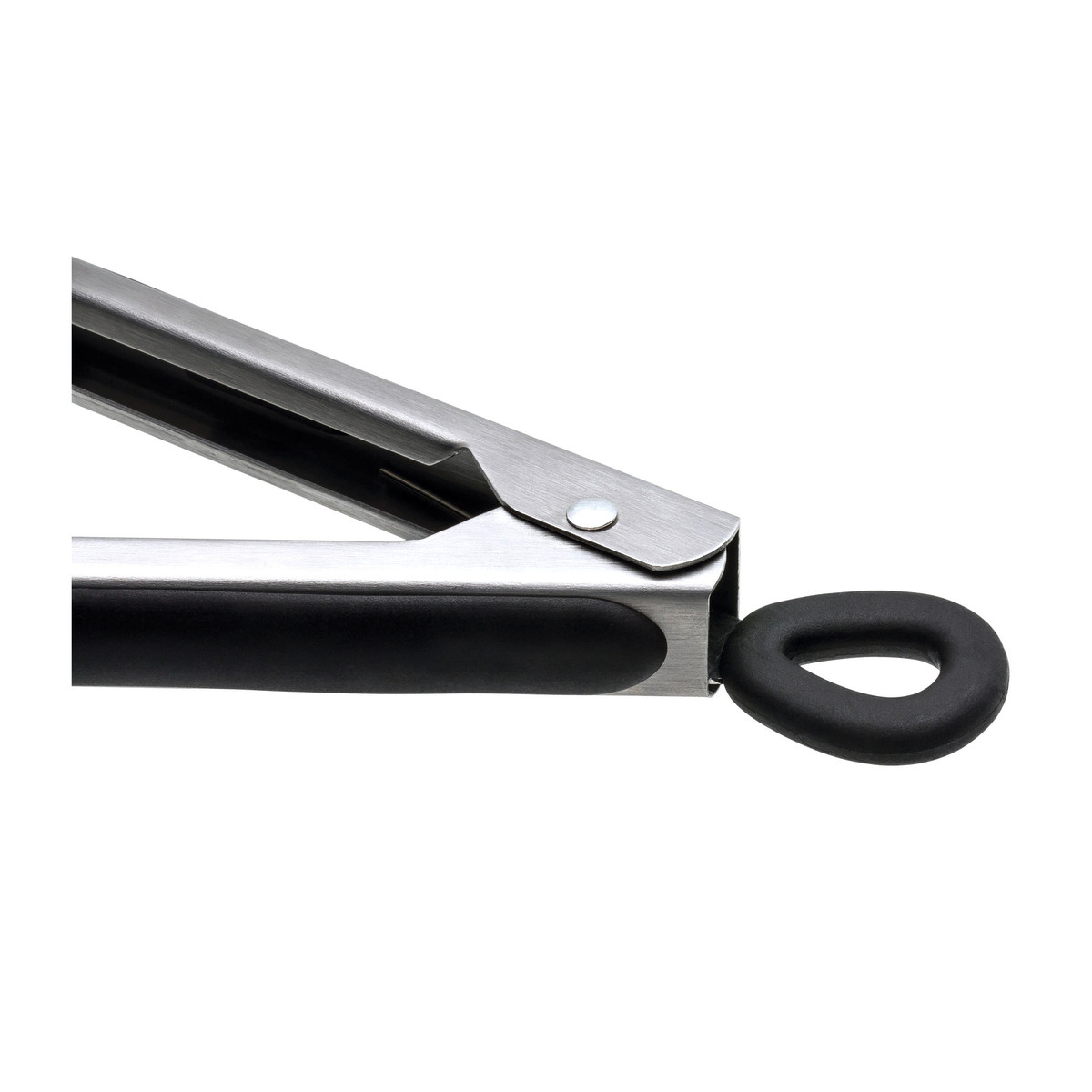 Die Edelstahl-Grillzange kann über Ziehen der Schlaufe am Kopf verriegelt oder geöffnet werden.