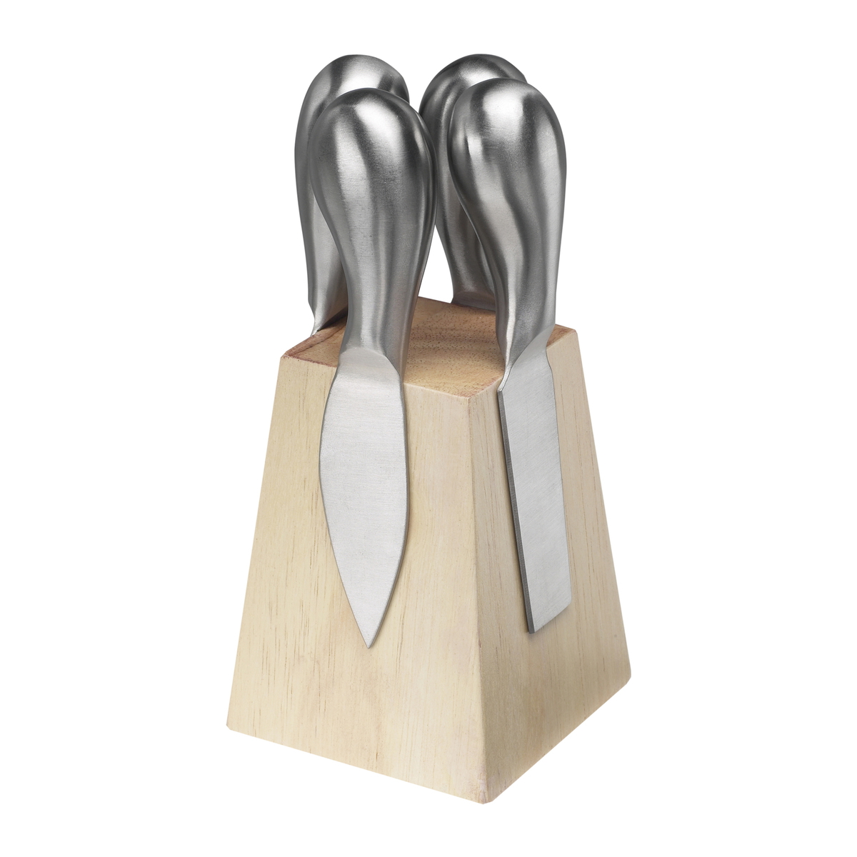 Auf jedem Buffet ein erstklassiger Hingucker! Massiver Holzständer mit Magneten und vieteiligem Käsebesteck aus Edelstahl.