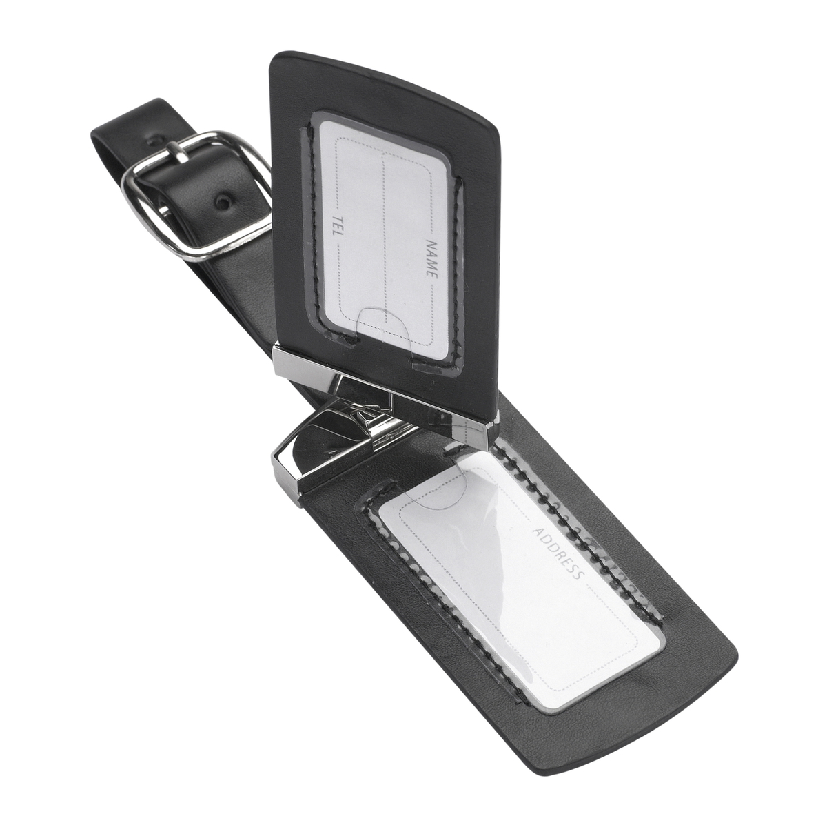 Der aufklappbare Kofferanhänger aus schwarzem Kunstleder und edlem Metall, bietet Ihnen zwei Adresslaschen, um Ihre Informationen zu hinterlegen. Mit einem Dornverschluss lässt sich der Kofferanhänger sicher an Ihrem Koffer befestigen. Der Anhänger kann mit einer Lasergravur oder einem einfarbigen Tampondruck veredelt werden.Fragen zum Produkt "Kofferanhänger RE98-BRASELTON"?