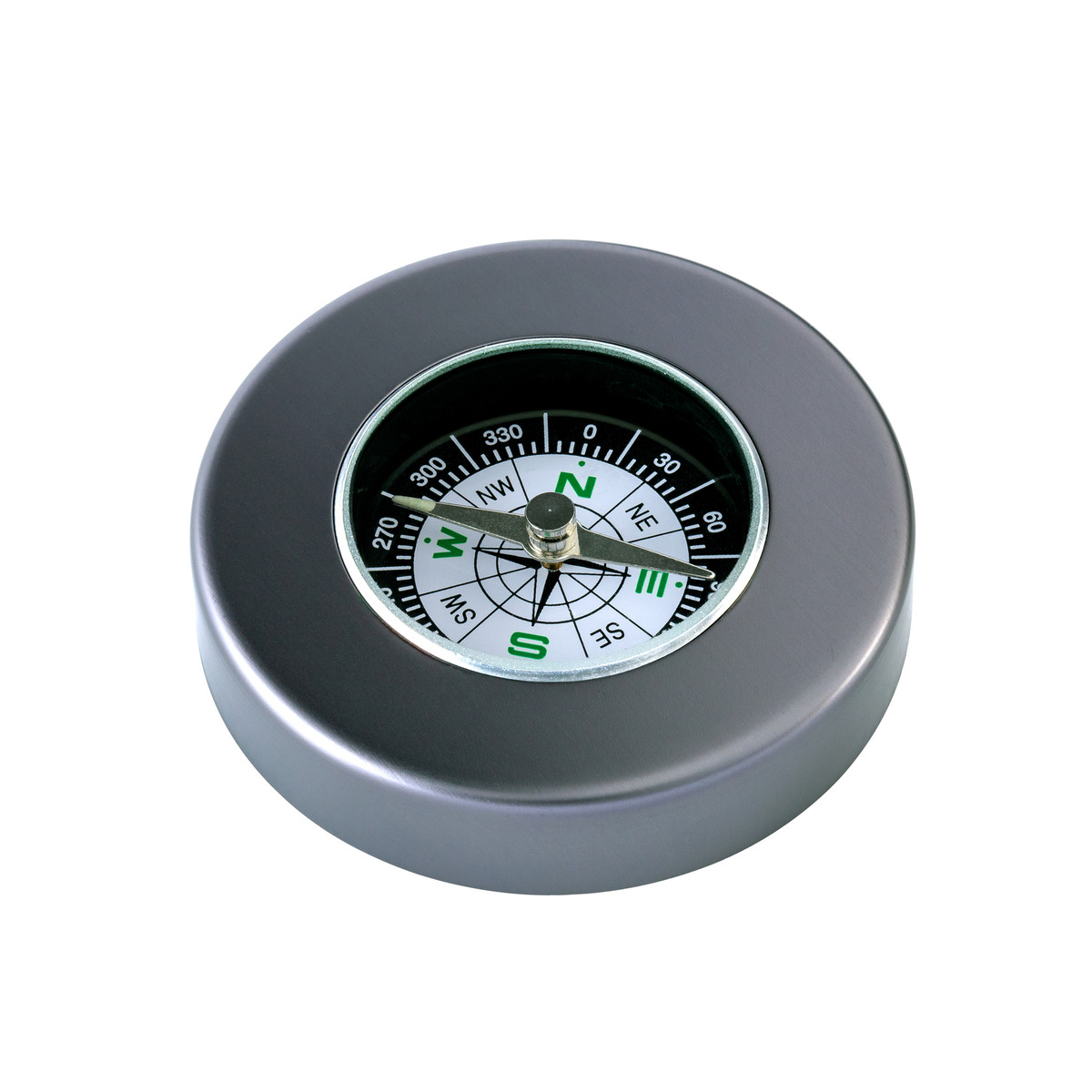 Der handliche, dunkelgraue Kompass aus hochwertigem Aluminium ist ein echter Hingucker auf dem Schreibtisch. Nicht nur die Himmelsrichtungen (in englischen Abkürzungen) sind angegeben, auch eine Gradzahlenskala ist aufgedruckt.