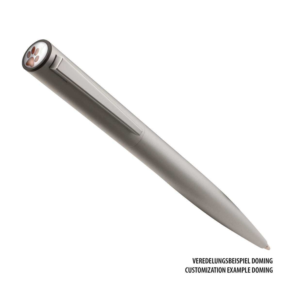 Ein Kugelschreiber, der sich schnell zu Ihrem Markenzeichen machen lässt. Das runde Doming mit Ihrem Logo kann am Kugelschreiberkopf aufgebracht werden.