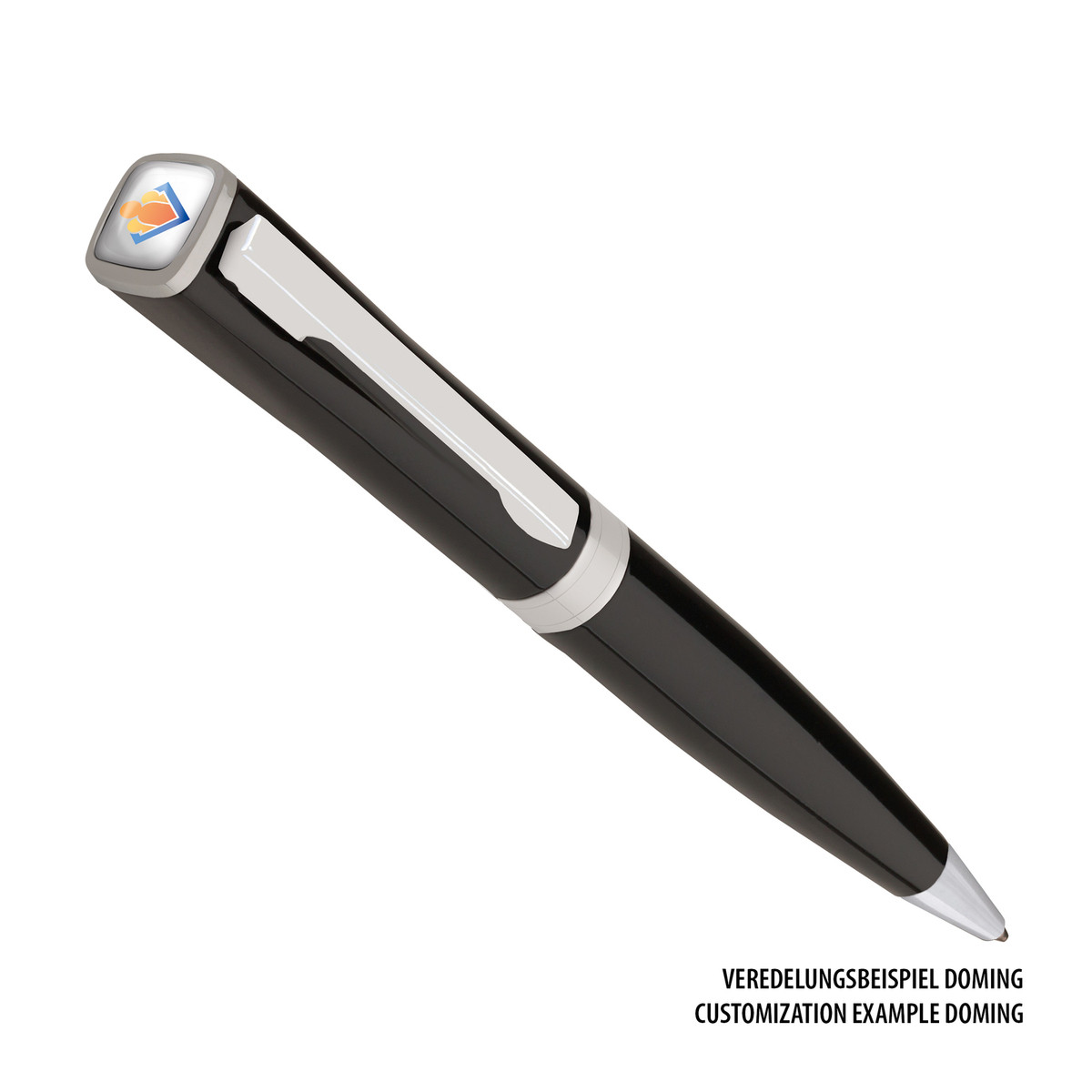 CLIC CLAC exklusiv: Individuell mit einem Doming veredelt erhält dieser Kugelschreiber durch Ihr Logo echten Markencharakter. Das quadratische Doming wird am Kugelschreiberkopf aufgebracht.
