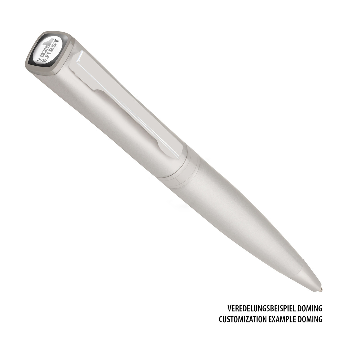 CLIC CLAC exklusiv: Individuell mit einem Doming veredelt erhält dieser Kugelschreiber durch Ihr Logo echten Markencharakter. Das quadratische Doming wird am Kugelschreiberkopf aufgebracht.