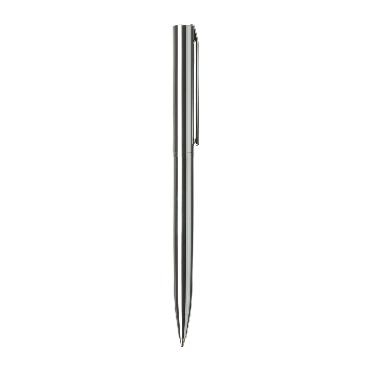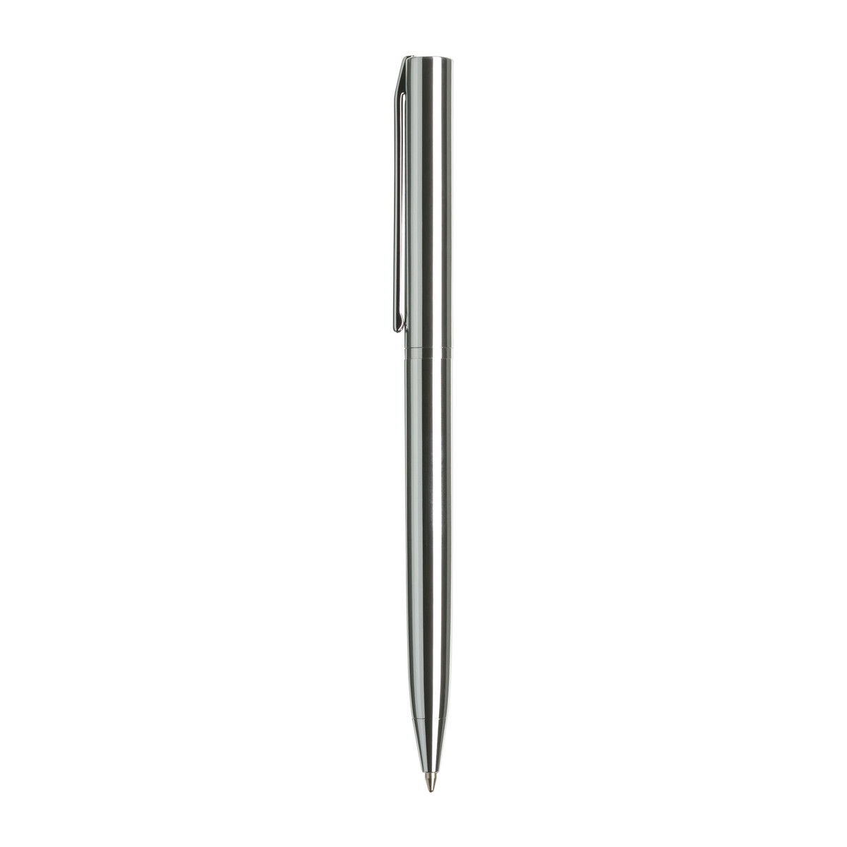 Passt genauso zur sportlichen Dame, wie zum distinguierten Herrn. Schöner, linearer Kugelschreiber mit schwarzer Mine mit flachem Kappenabschluss und grazilem Clip.