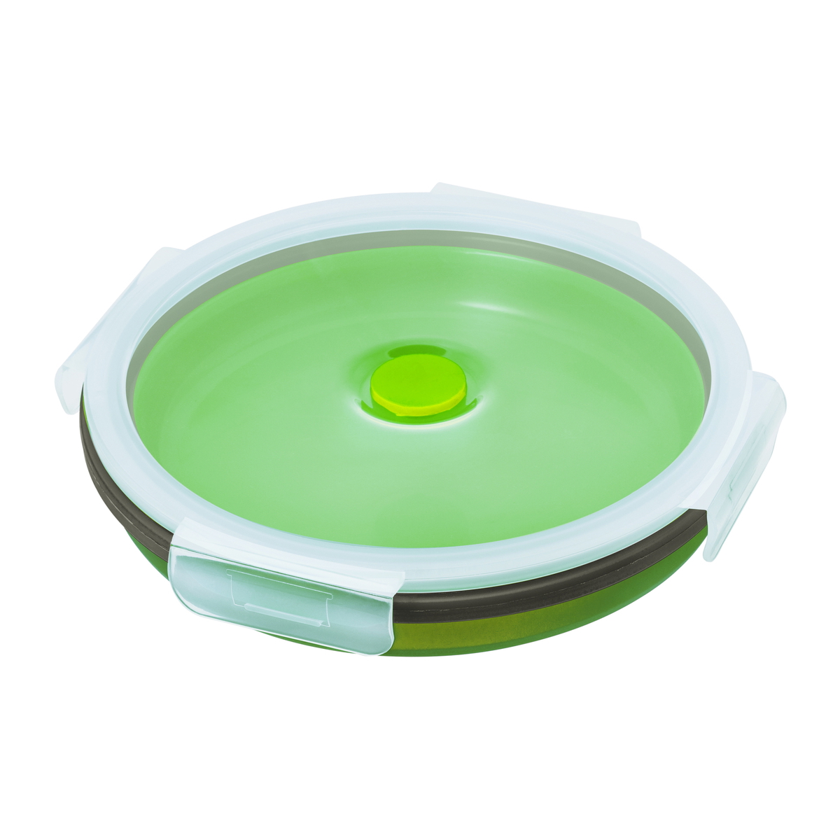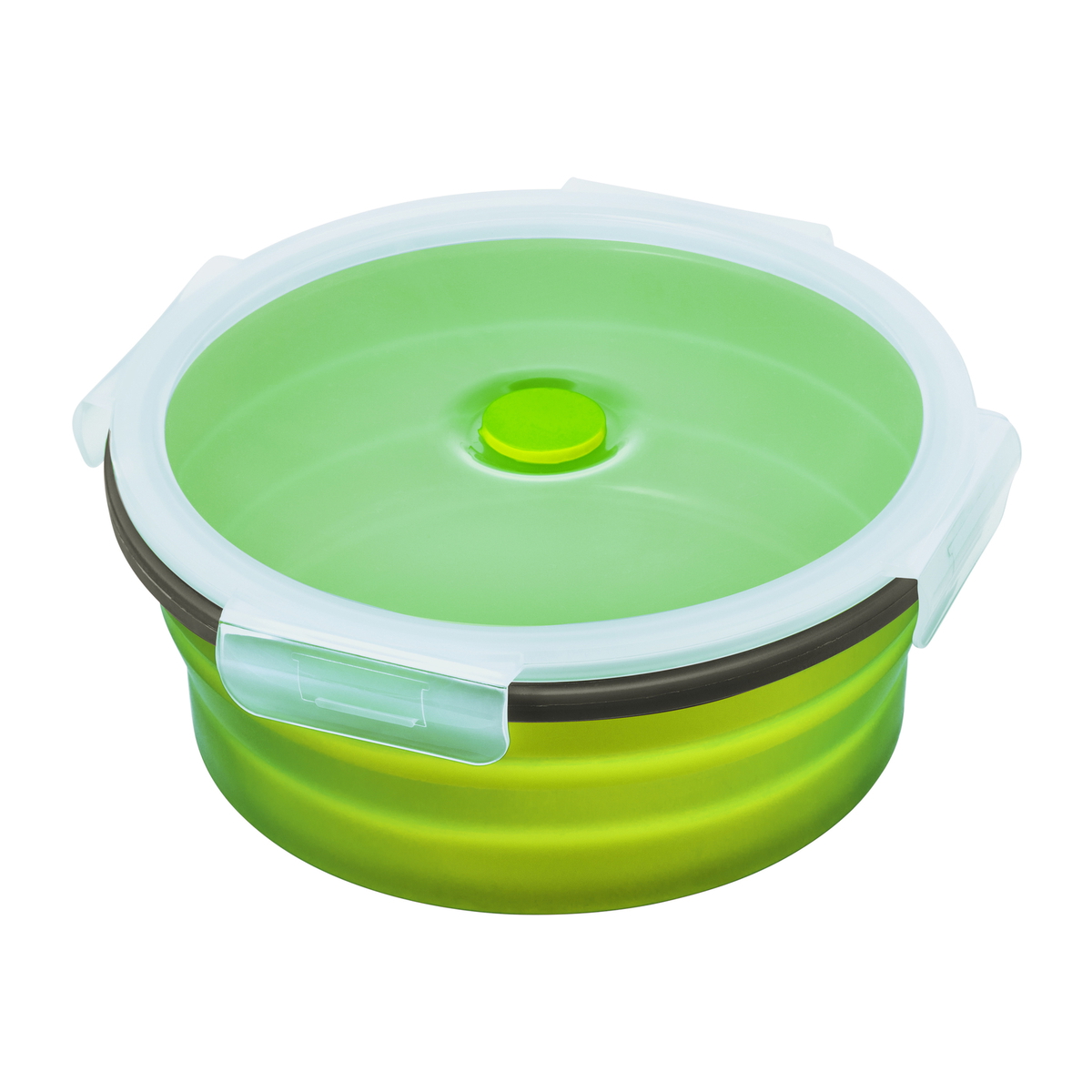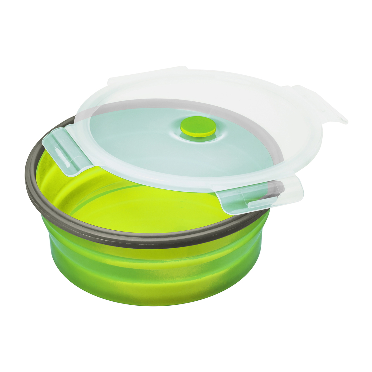 Ideal für das Büro und unterwegs - Die hellgrüne Lunchbox REFLECTS-RANCHI hat die perfekte Größe für ein Mittagessen oder auch für den Snack zwischendurch. Sie hat ein maximales Fassungsvermögen von 1,2 Litern, ist mikrowellengeeignet und spülmaschinenfest.Der untere Teil der Lunchbox ist aus flexiblem, aber standsicheren, Silikon mit einem Klippdeckel aus transparentem Kunststoff. Im Deckel ist ein Ventil für den Einsatz in der Mircowelle. Überschüssiger Dampf kann entweichen und die Speisen werden schonend und gleichmäßig erhitzt.