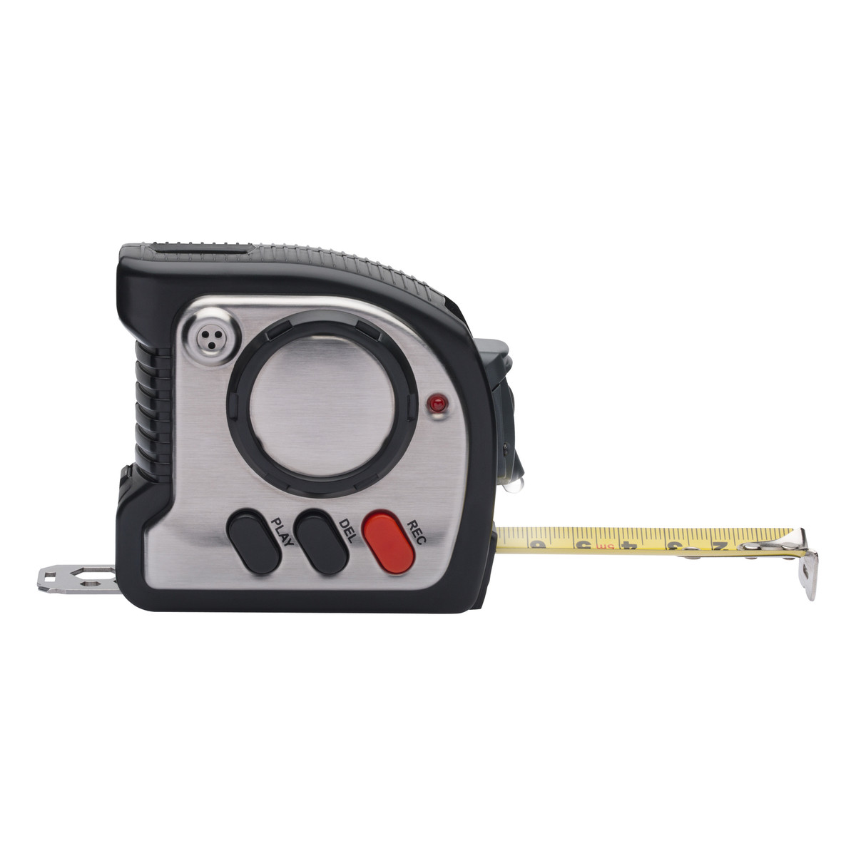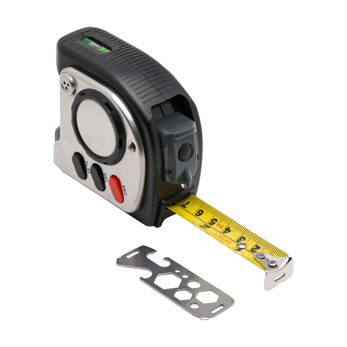 Nicht einfach nur ein Maßband! Dieses, mit Meter- und Fußangaben, hat einen Gürtelclip, eine integrierte Libelle und Mehrfachschraubenschlüssel mit Flaschenöffner, ist arretierbar und nimmt auch noch auf dem 40-Sekunden-Mulitimessage-Rekorder auf, welche Werte Sie ausmessen. 5 m.