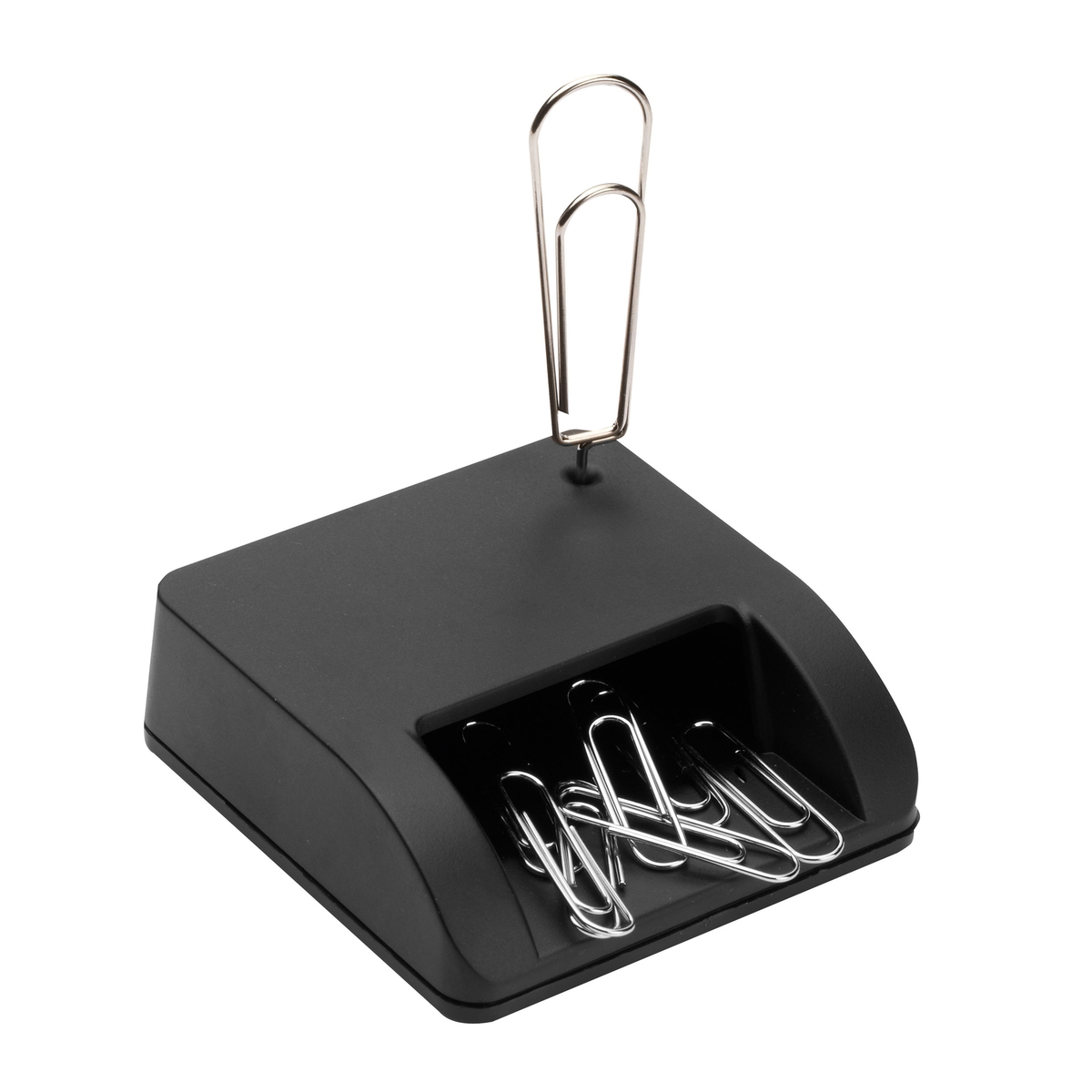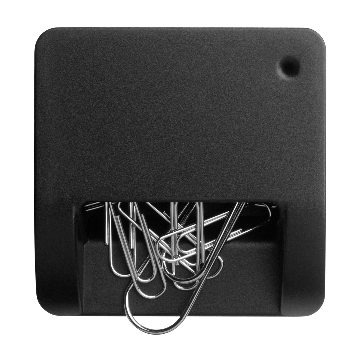 Aufgeräumte Schreibtische: Büroklammernreservoir mit Halterung für wichtige Notizen.
