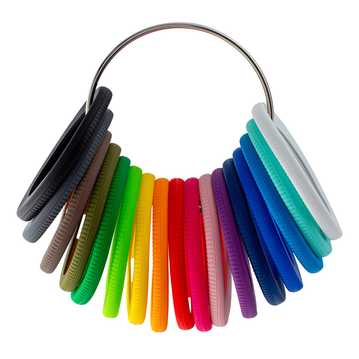 Unser Silikon-Musterset bietet Ihnen die perfekte Lösung, um die Haptik und besonders die Optik unserer konfigurierbaren Produkte zu erleben. Das Set umfasst alle 17 verfügbaren Farben und erleichtert Ihnen und Ihren Kunden die Farbauswahl erheblich. Basierend auf unserem Ring für den Wireless Charger myMatola, präsentiert das Musterset alle Silikonfarben übersichtlich und praktisch, sodass kein Farbmuster verloren geht.Fragen zum Produkt "Silikonband Musterset REEVES-MATOLA"?