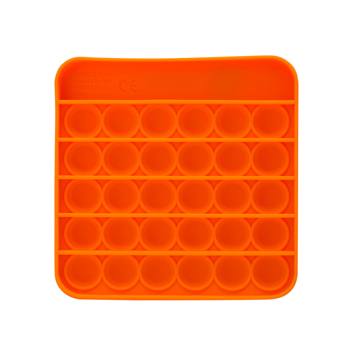 Beim diesem Spiel wird genau das Bedürfnis ausgelöst, das viele Menschen dazu veranlasst, Luftpolsterfolien-Blasen zum Platzen zu bringen. Die weichen Silikonhütchen lassen sich mit leichtem Widerstand eindrücken und erzeugen dabei ein befriedigendes „Plopp“-Geräusch. Sind alle Blasen eingedrückt, kann das Spiel einfach umgedreht und von neuem begonnen werden. Ob zum Stressabbau oder als Konzentrationshilfe, das REFLECTS-FIDGET TOY hat einen verführerischen Suchtfaktor. Zu zweit wird das Spiel zur spannenden Herausforderung: Denn wer die letzte Blase herunterdrückt, hat verloren.