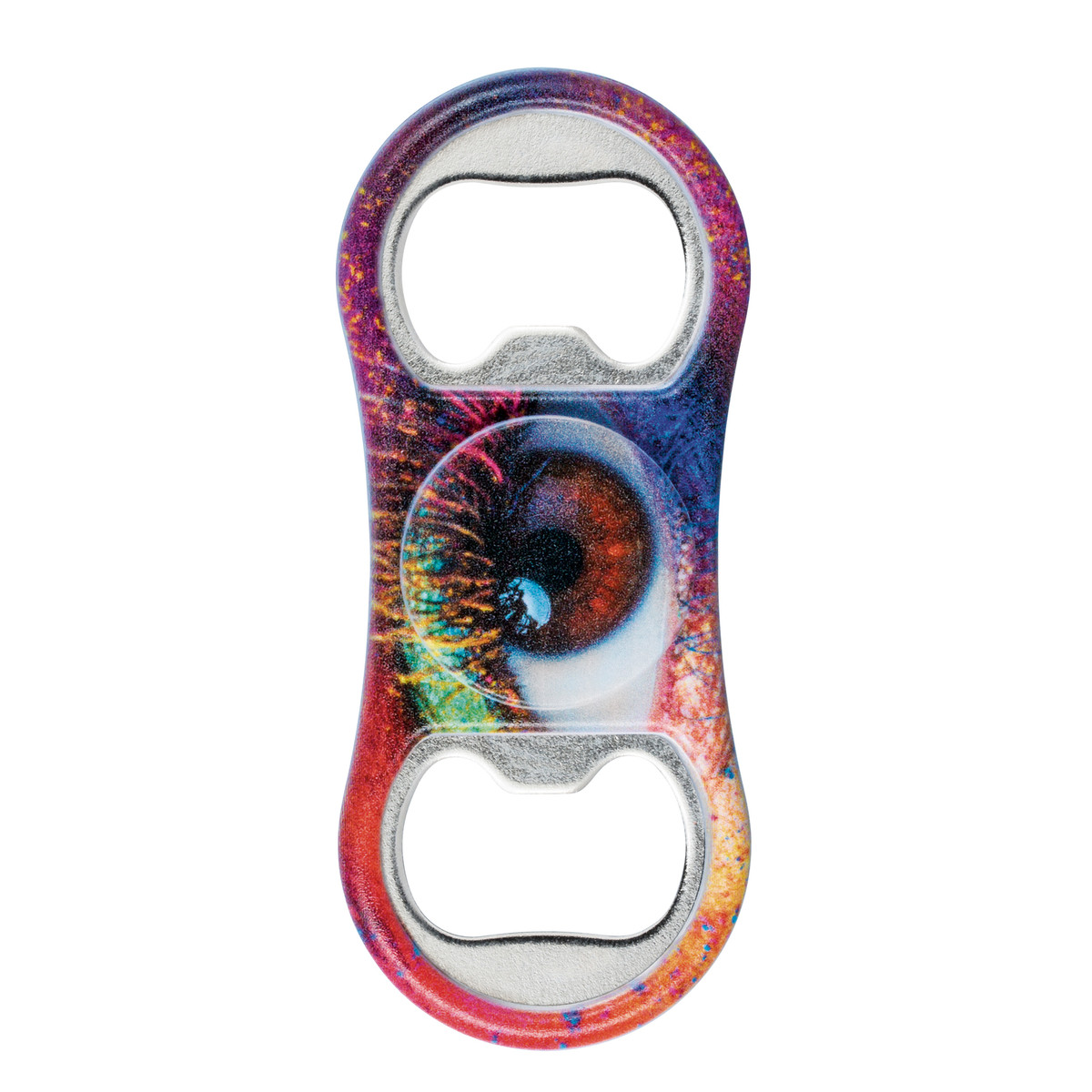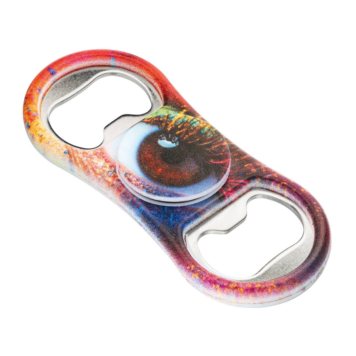 Der doppelseitige Flaschenöffner ist zugleich ein anregendes Handspielzeug. Wie der beliebte REFLECTS-Spinner lässt er sich zwischen Daumen und Zeigefinger bewegen und hilft unruhigen Geistern beim Warten, bei Stress oder Langeweile. Es gibt ihn in vier attraktiven Farben.