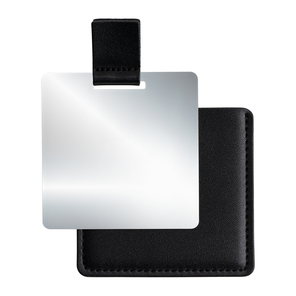 Ein Must-Have für alle, die Wert auf ein gepflegtes Äußeres legen. Mit dem handlich leichten Taschenspiegel können Sie unterwegs jederzeit Ihre Frisur überprüfen, Make-Up kontrollieren oder Lippenstift schnell auffrischen. Der bruchsichere Edelstahl-Spiegel bietet auf der einen Seite eine hochglanzpolierte, auf der anderen eine gebürstete Oberfläche. In einer Kunstleder-Hülle ist der Spiegel sicher aufbewahrt und lässt sich dank der Grifflasche mühelos herausziehen. Die Hülle mit Ziernaht ist in edlem Schwarz oder Weiß erhältlich und überzeugt durch ihre angenehme Haptik.Die Veredelung kann entweder durch Tampondruck oder Lasergravur auf der gebürsteten Werbefläche, oder per Tampon- oder UV-Druck auf dem Etui erfolgen. Geliefert wird der Artikel in einem hochwertigen Design-Etui.