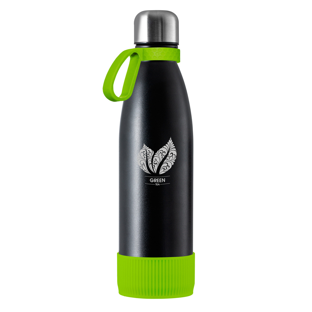 Veredeltes Muster – 500 ml Thermoflasche myNizza mit Ring und Sleeve - Schwarz/Hellgrün/Hellgrün