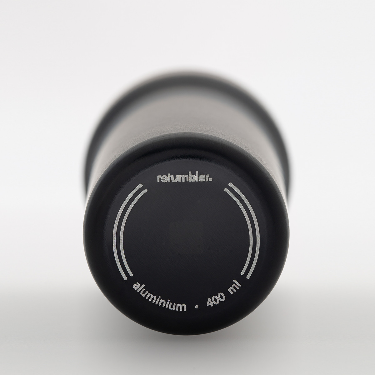 Lasergraviertes Muster: Schwarzer 400 ml Trinkbecher aus recyceltem Aluminium