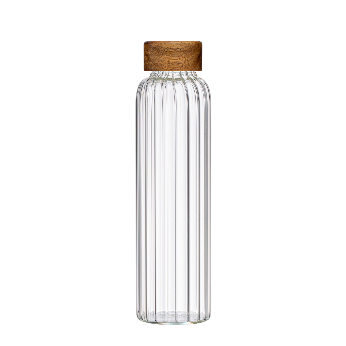 Trendige 500 ml Trinkflasche aus Borosilikatglas mit Akaziendeckel