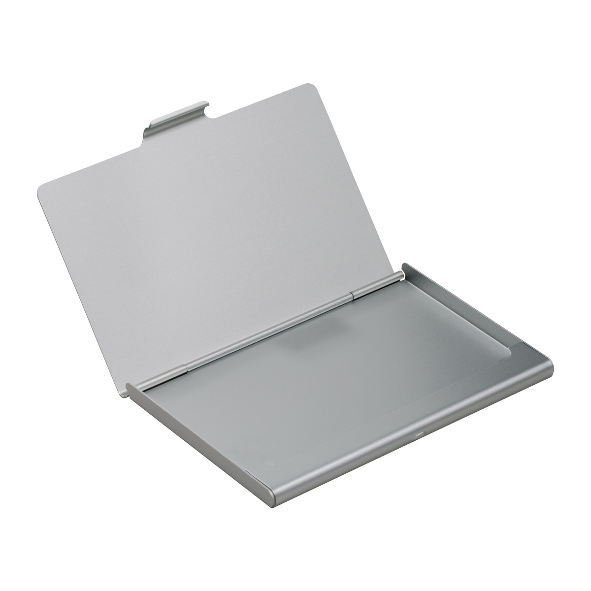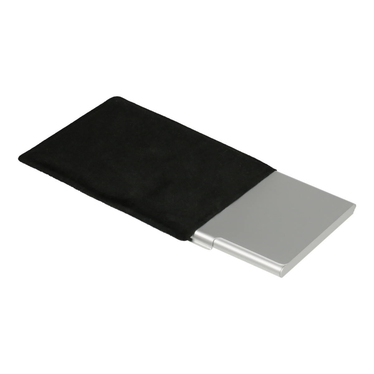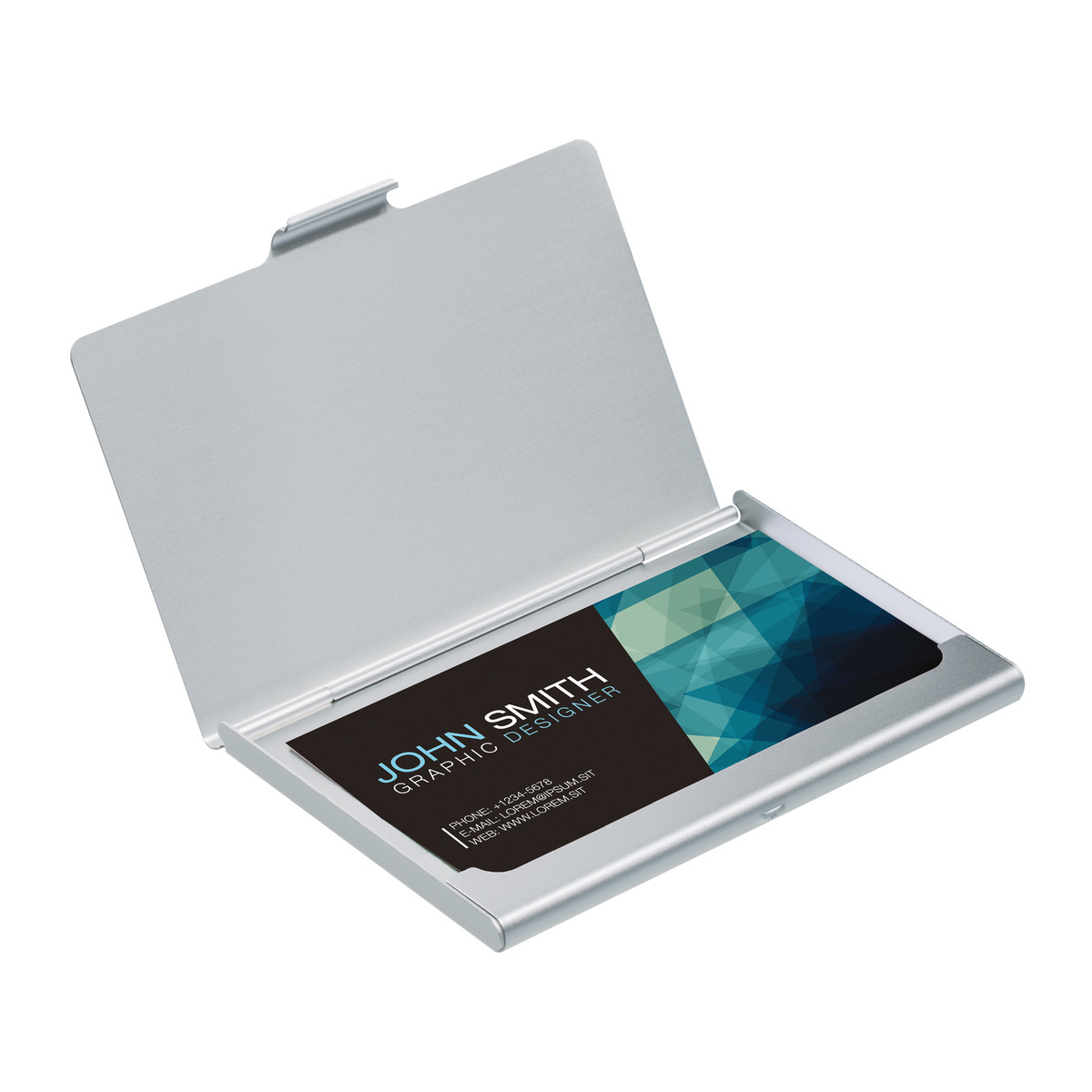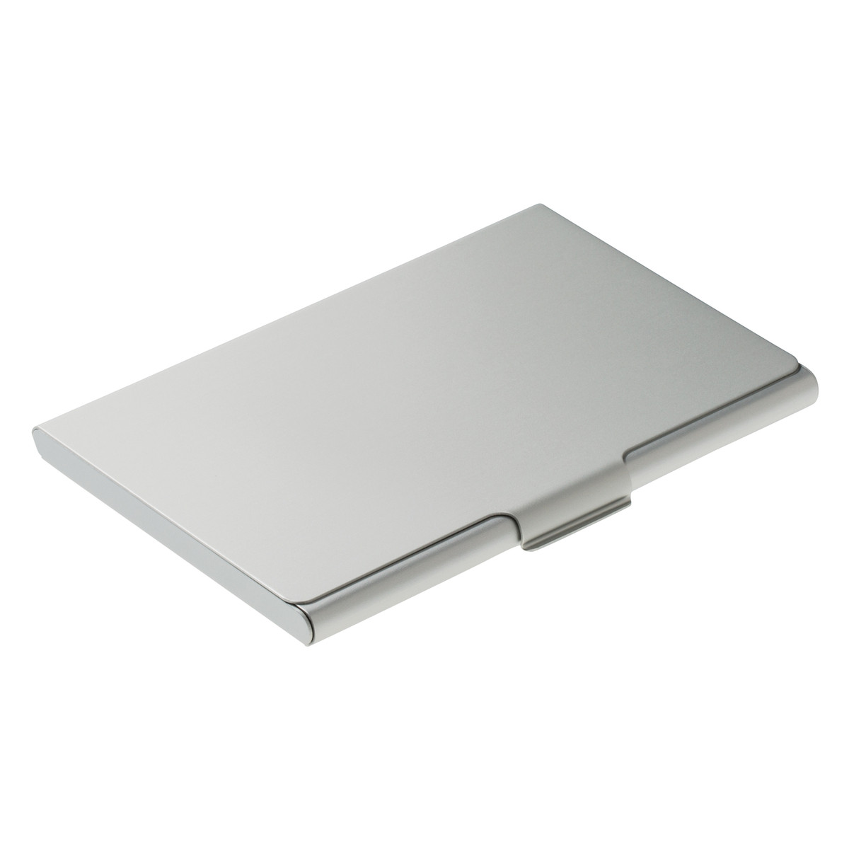 Minimalistisches Design, geringes Gewicht und eine schöne große Werbefläche zeichnen dieses Visitenkartenetui aus. Je nach Stärke des Papiers passen bis zu 10 Visitenkarten in die Box aus Aluminium.Veredelbar mit einer schlichten Lasergravur oder einem bis zu dreifarbigen Tampondruck.