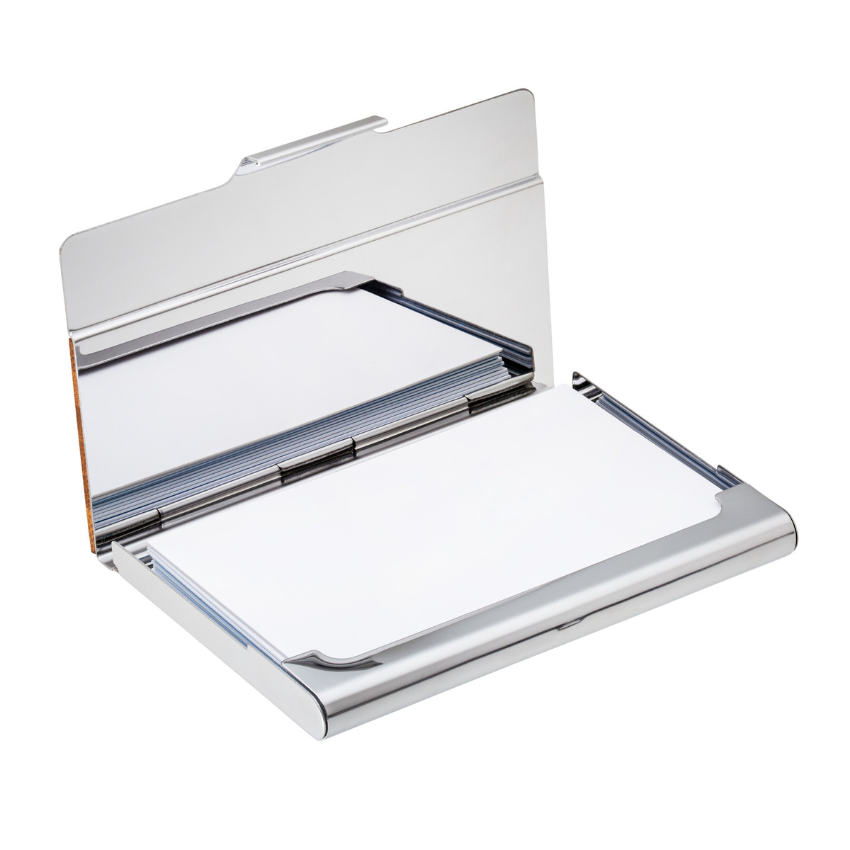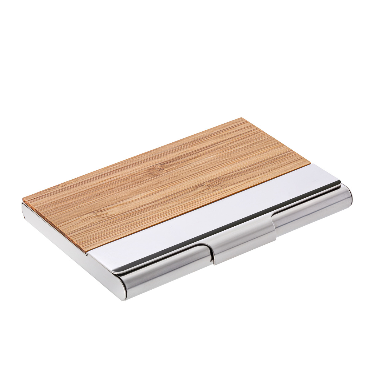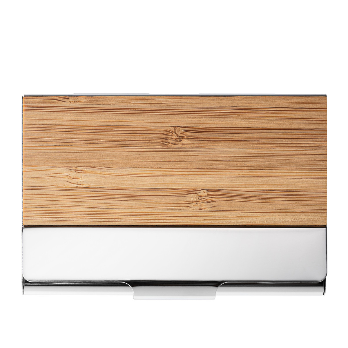 Die Kombination aus natürlichem Bambus und kühlem Edelstahl verleiht diesem Visitenkartenetui eine ganz besonders schöne Optik. Die Visitenkartenbox bietet Platz für bis zu 12 Visitenkarten und wird durch eine individuelle Veredelung mit ihrem Logo zu einem garantierten Hingucker.