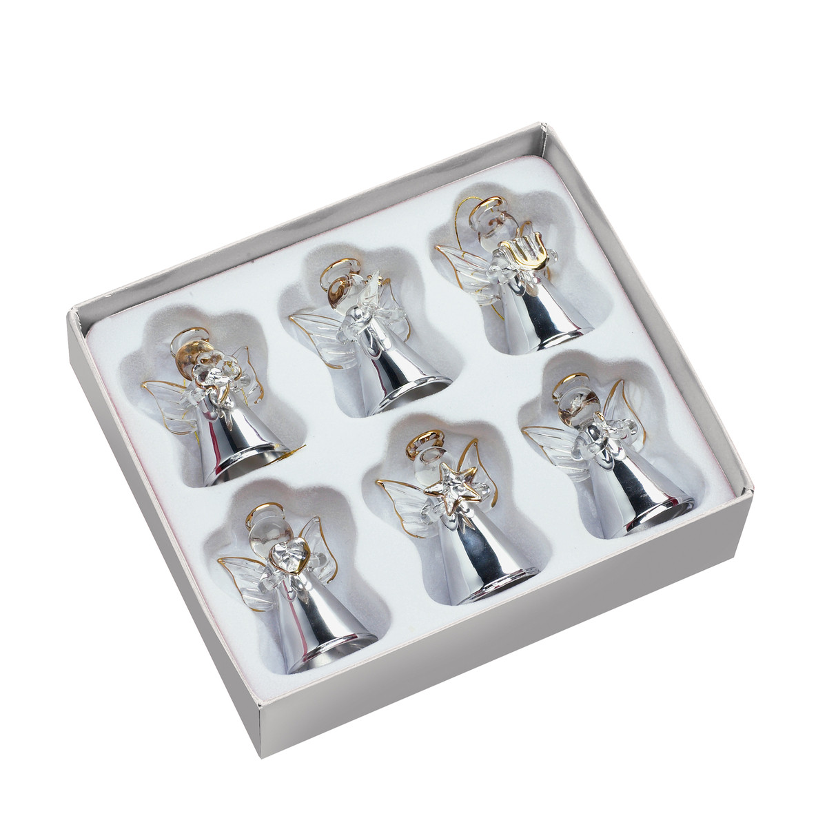 Santa’s Bodyguards! Niedliche Engelchen aus Glas mit silbernem und goldenem Dekor lassen Ihren Christbaum feierlich erstrahlen! Sechs verschiedene in einem Set.