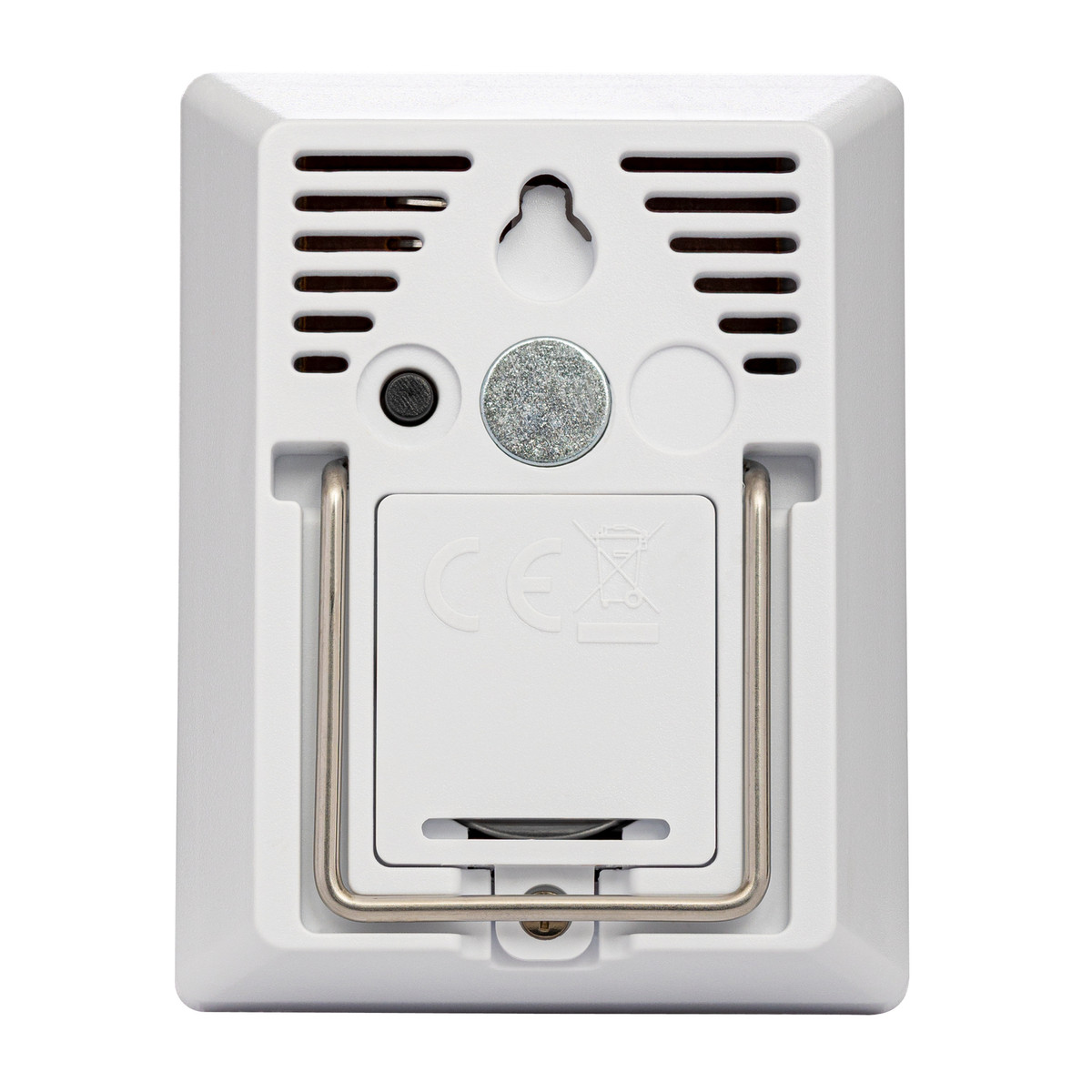 Das Produkt bietet 3 Befestigungsmethoden: Dank des ausklappbaren Standfußes kann die Mini-Wetterstation aufgestellt werden. Durch das Aufhängeloch auf der Rückseite lässt sie sich bequem an der Wand montieren. Mithilfe des integrierten Magnets kann das Raumthermometer auch an der Metalloberfläche befestigt werden.
