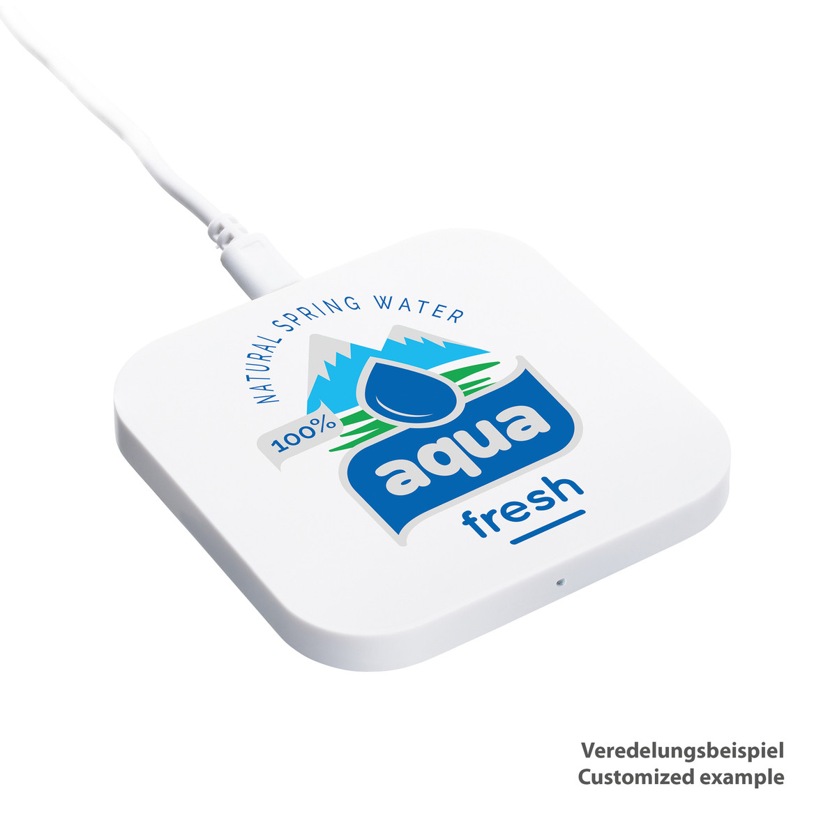 Unser Wireless Charger ist nicht nur praktisch, sondern auch noch auffallend schön: Die markante Werbefläche kann großflächig und vierfarbig veredelt werden, so wird sie zum perfekten Werbeträger. Die kabellose Ladestation ist für alle Smartphones geeignet, die eine kabellose Ladefunktion unterstützen. Die Geräte der neueren Generationen können das durchweg.Laden Sie Ihr Smartphone kabellos und unkompliziert, nur die Station wird an eine Stromquelle angeschlossen. Das USB Kabel für die Ladestation ist enthalten.