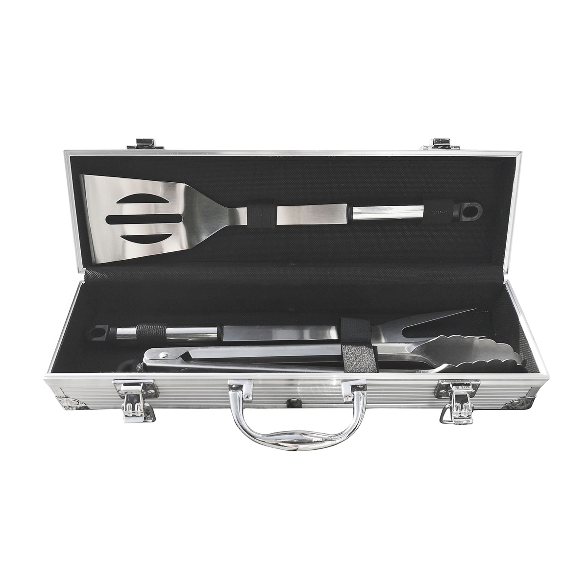 A sturdy barbecue case with high-quality, stainless steel utensils is the perfect gift for any barbecue enthusiast. The set includes a barbecue turner, a barbecue fork and tongs.