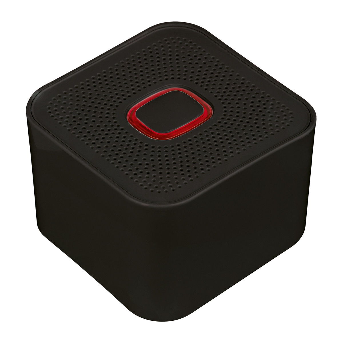 controls, up to 6 hours playing time and very clear sound. It has 5 watts output power. A charging cable is included. The colour ring around the logo plate is illuminated by LED backlight.