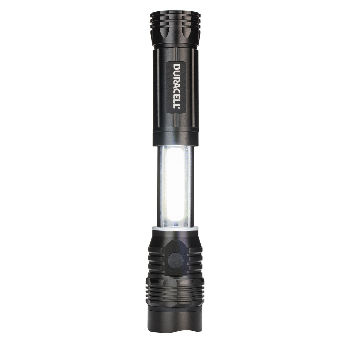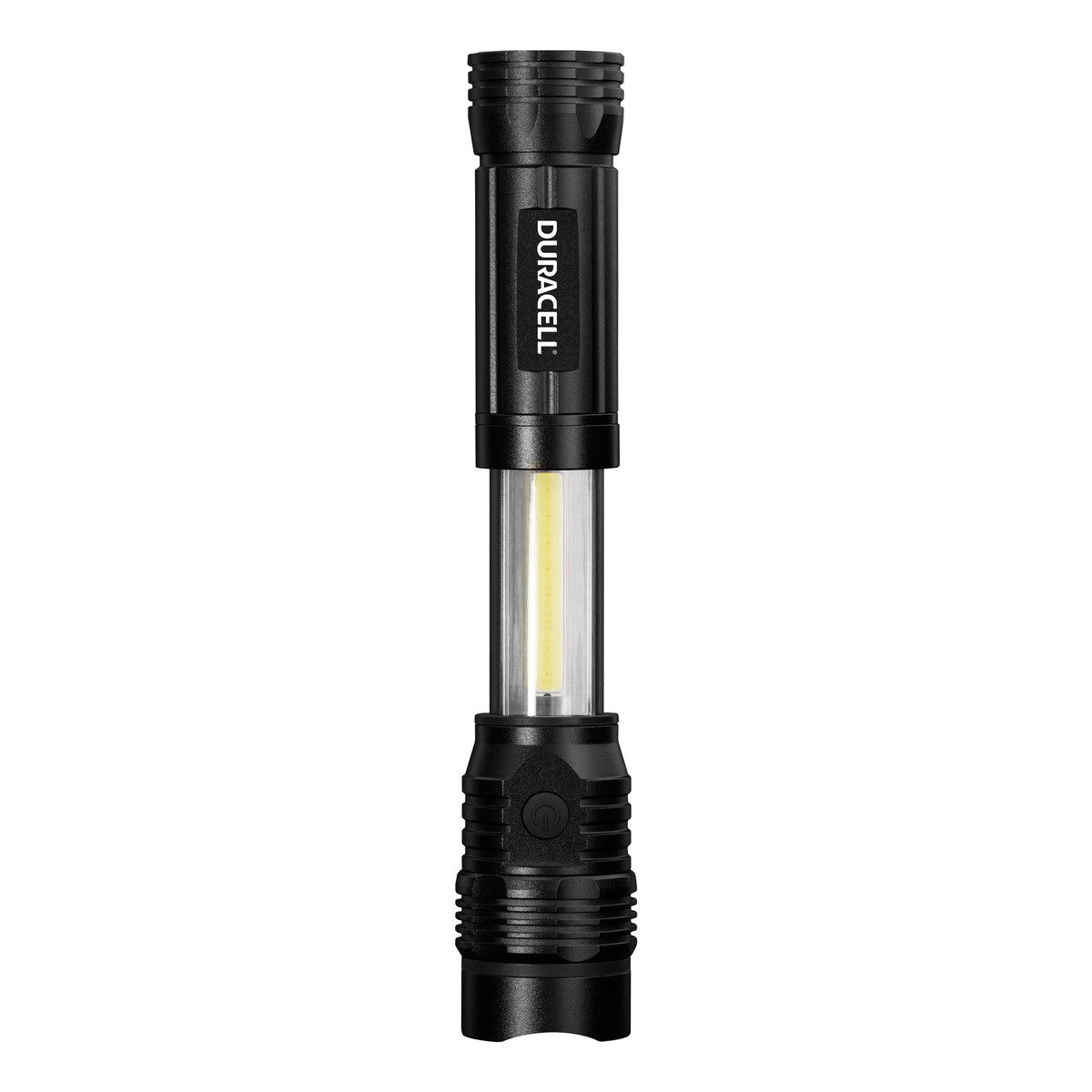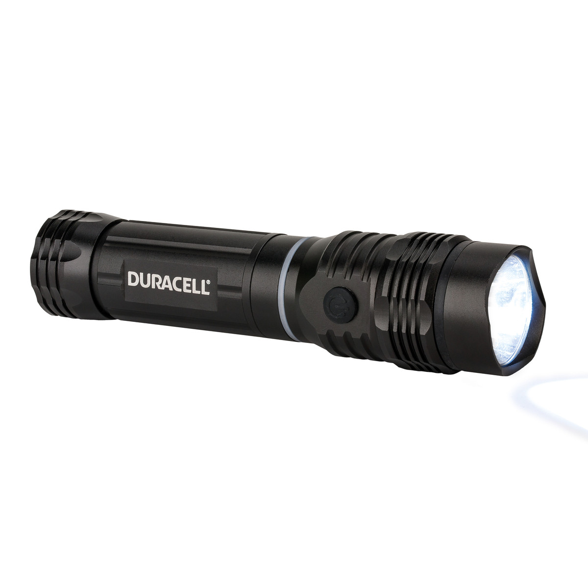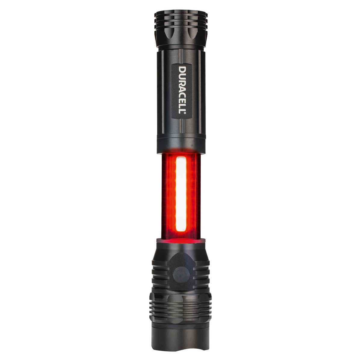 The 3 watt CREE LED and practical COB light strip give this Duracell torch plenty of power. The light strip can be red or white and also has an SOS function. The base cover has a practical magnet to attach the torch to any magnetic surface. This product is made of high quality aluminium and is rugged, impact resistant and protected against splashes.