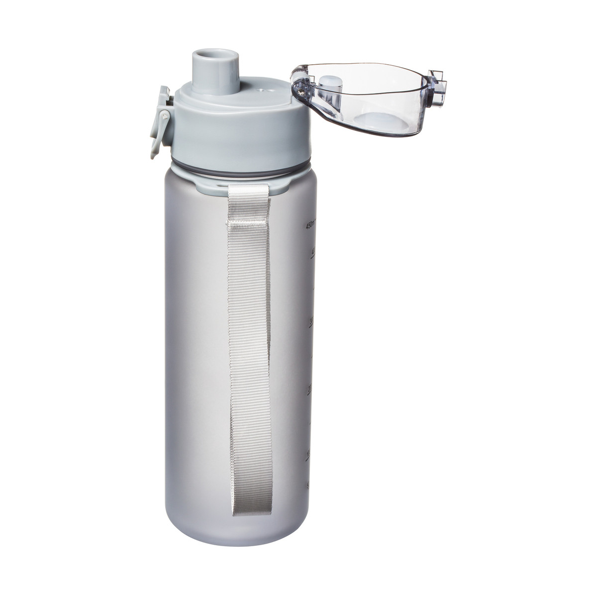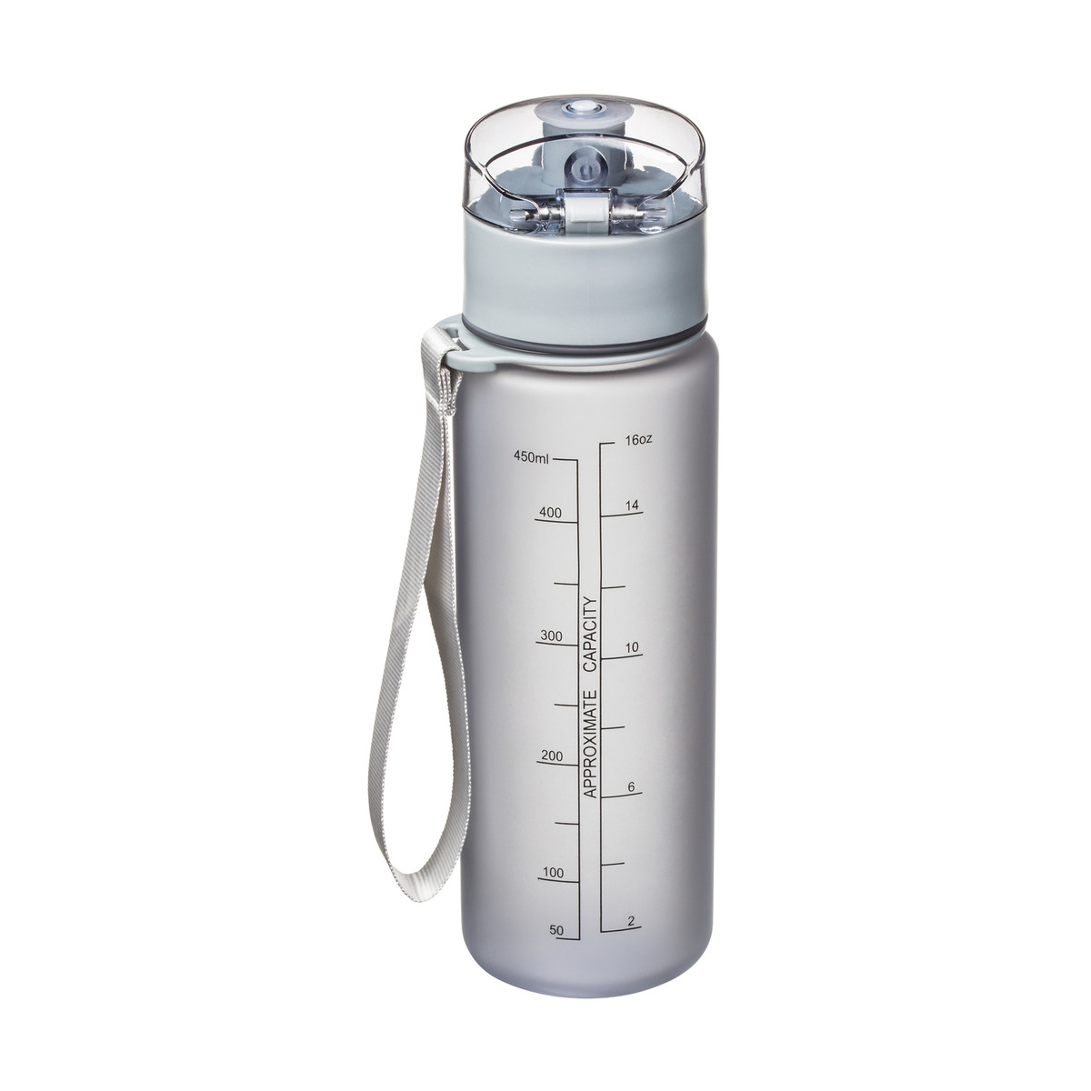 The tritan sports drinking bottle can be opened one-handed. It has a carrying loop, is very durable, has a capacity of 450 ml and is generally just right for short runs.