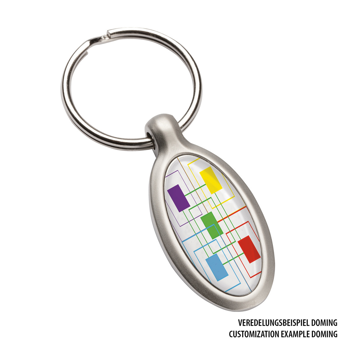 This metal key ring in the shape of an ellipse can be customised easily with a full-surface doming. Alternatively, an elegant laser engraving can be used.Do you have any questions concerning this Key Ring RE98-IRUN ELIPSE?