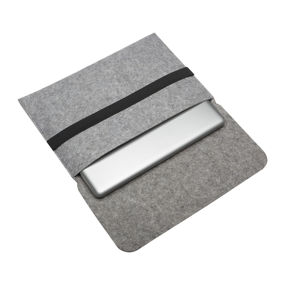 This laptop bag made of felt in combination with a soft elastic strap offers optimal protection for your laptop. For quick packing and unpacking, the sleeve can be closed with an elastic strap. To fit perfectly into the sleeve, the laptop should not exceed the dimensions of 26x38cm. Special designs from 500 pieces onwards on request, as well as transfer printing or embroidery.Do you have any questions concerning this Laptop Bag RE98-APPINGEDAM light grey?