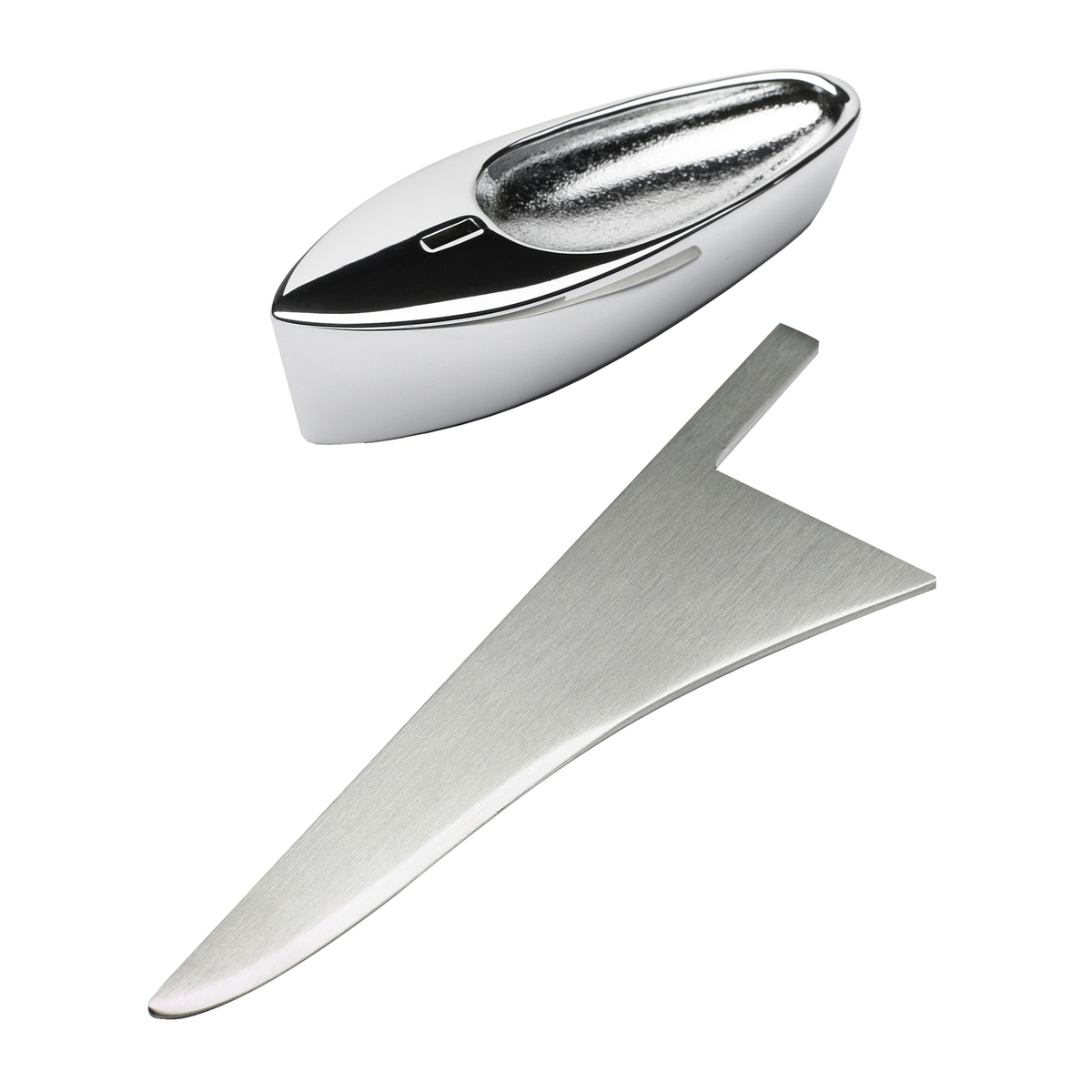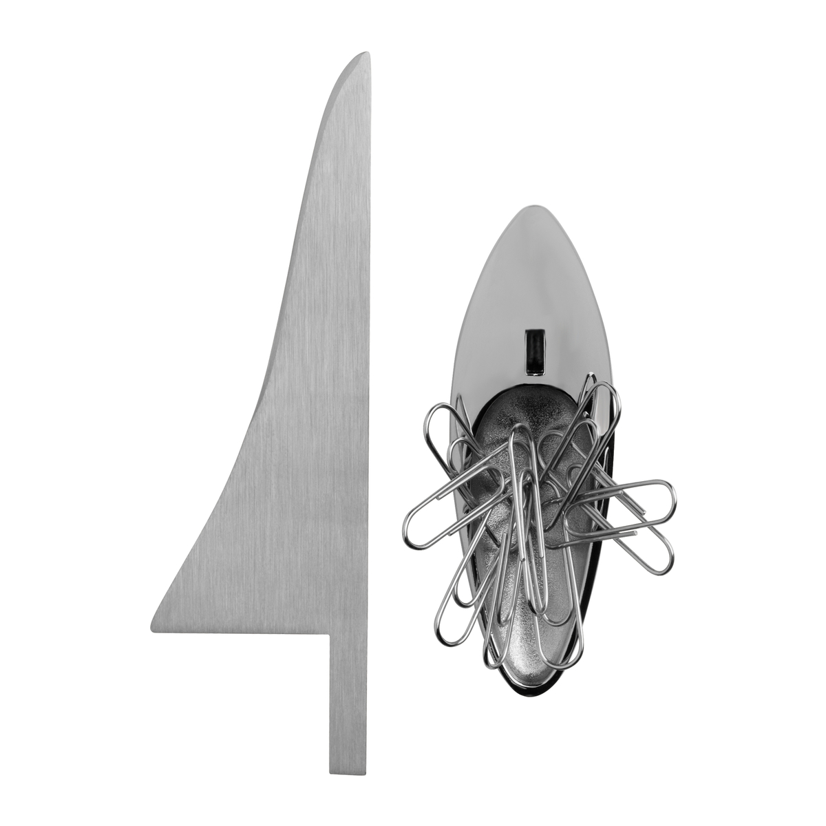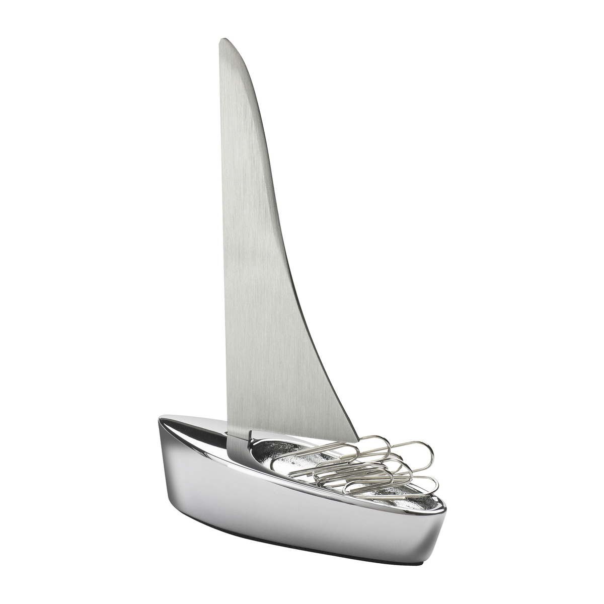 Nicht nur für Segler: Metallenes Schreibtischset mit Brieföffner und einer Magnethalterung für Büroklammern.