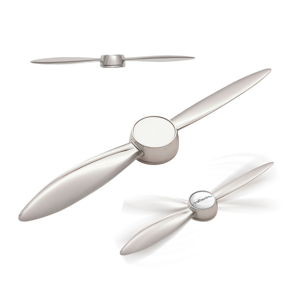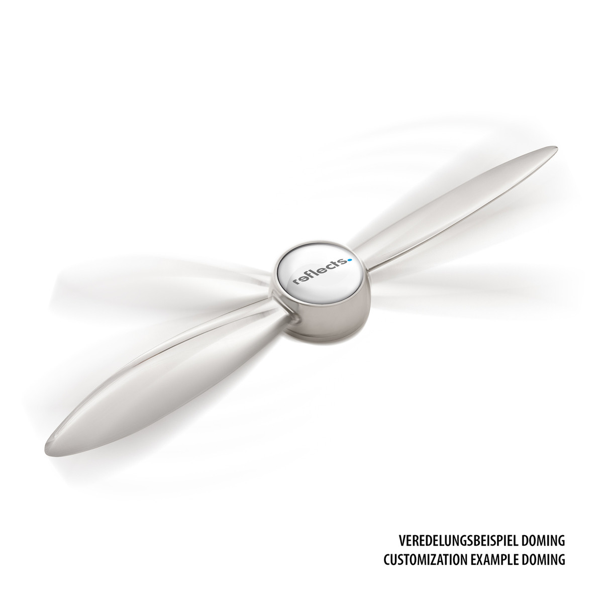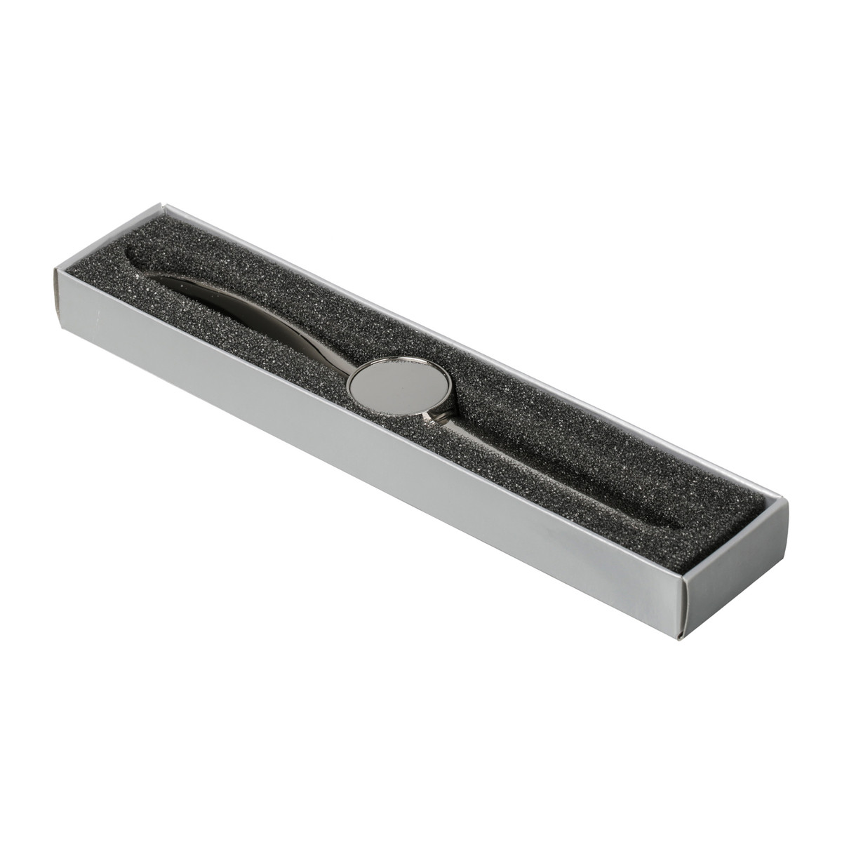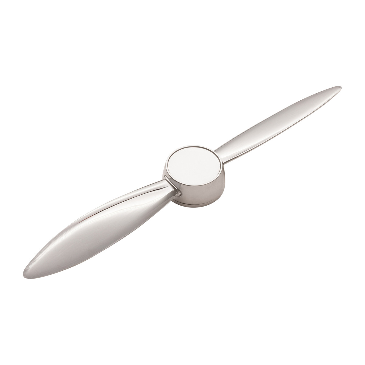 The rotatable letter opener of high quality chromed metal can be branded in the middle with a suggestive doming or laser engraving.