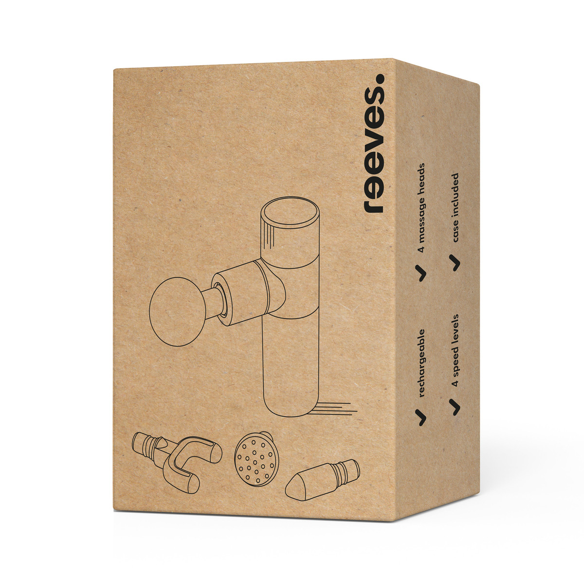 Relaxation at home and on the go. The REEVES-Acurel massage gun delivers an exceptional massage experience. With its 4 interchangeable massage heads and 4 intensity levels, it meets individual needs perfectly.The device is operated via a single-button control, making it easy to adjust the intensity. After 15 minutes, the massage gun automatically turns off. This product features built-in over-voltage, short-circuit, and overheat protection.