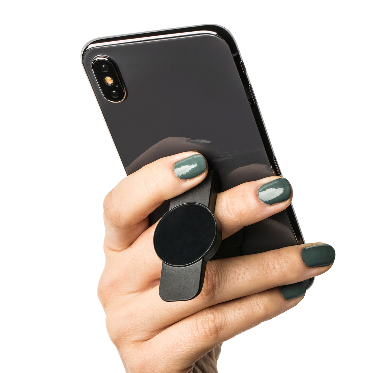 The latest trend: With the practical FLIPSOCKET you have your smartphone perfectly under control. It is self-adhesive, foldable and can be easily attached to the back of your device. Use it as a base and rotate it for landscape and portrait views. Mobile video watching becomes a real pleasure. As a handle for your smartphone, you always have a firm hold when calling, chatting or texting. Perfect as a Giveaway! Design it with a doming or pad-print and make it your unmistakable advertising medium.