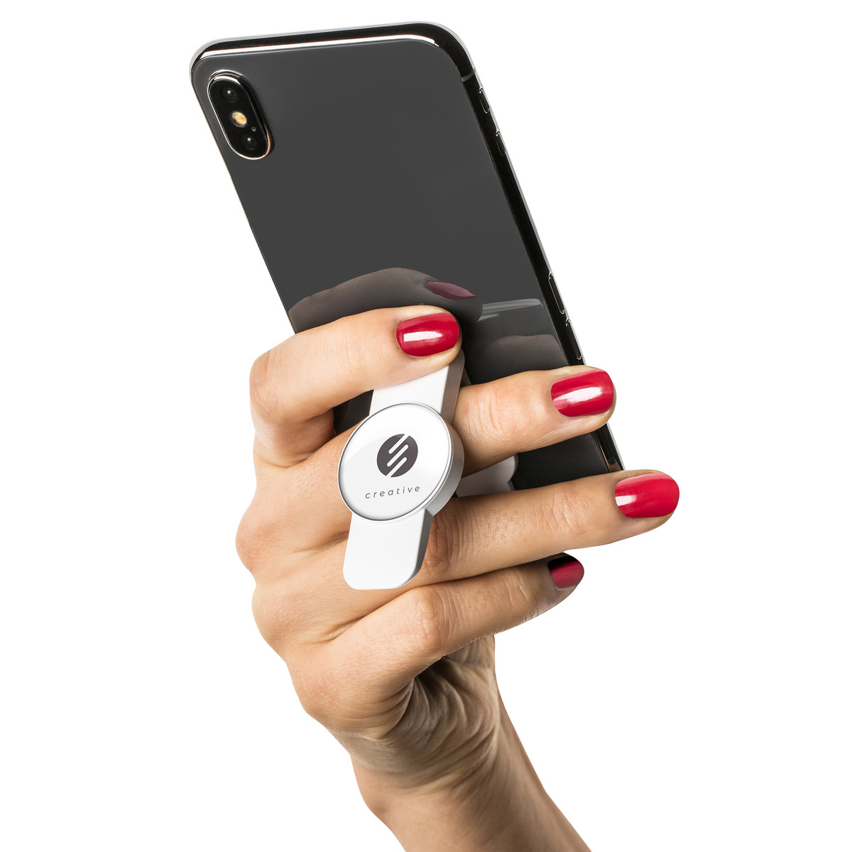 The latest trend: With the practical FLIPSOCKET you have your smartphone perfectly under control. It is self-adhesive, foldable and can be easily attached to the back of your device. Use it as a base and rotate it for landscape and portrait views. Mobile video watching becomes a real pleasure. As a handle for your smartphone, you always have a firm hold when calling, chatting or texting. Perfect as a Giveaway! Design it with a doming or UV-print and make it your unmistakable advertising medium.