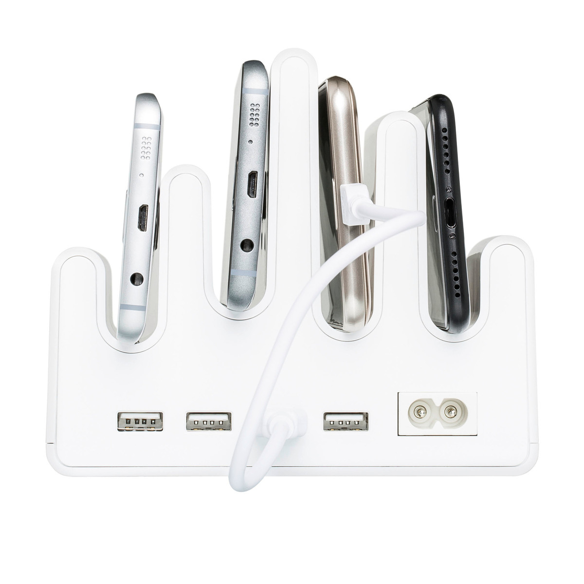 Multiple USB charging station with changing light function. A light object that can be more than just be beautiful! Because behind the impressively designed luminaire with effective change-over light and light that can be detected by touch in six different colors, there is also a charging station for a total of four different USB devices. It is powered by a mains plug (included). Input Power: 100-240V, 50 / 60HZ; 0.68A max. Output power: AC 5V / 6A 30W, max. 2.4A per port