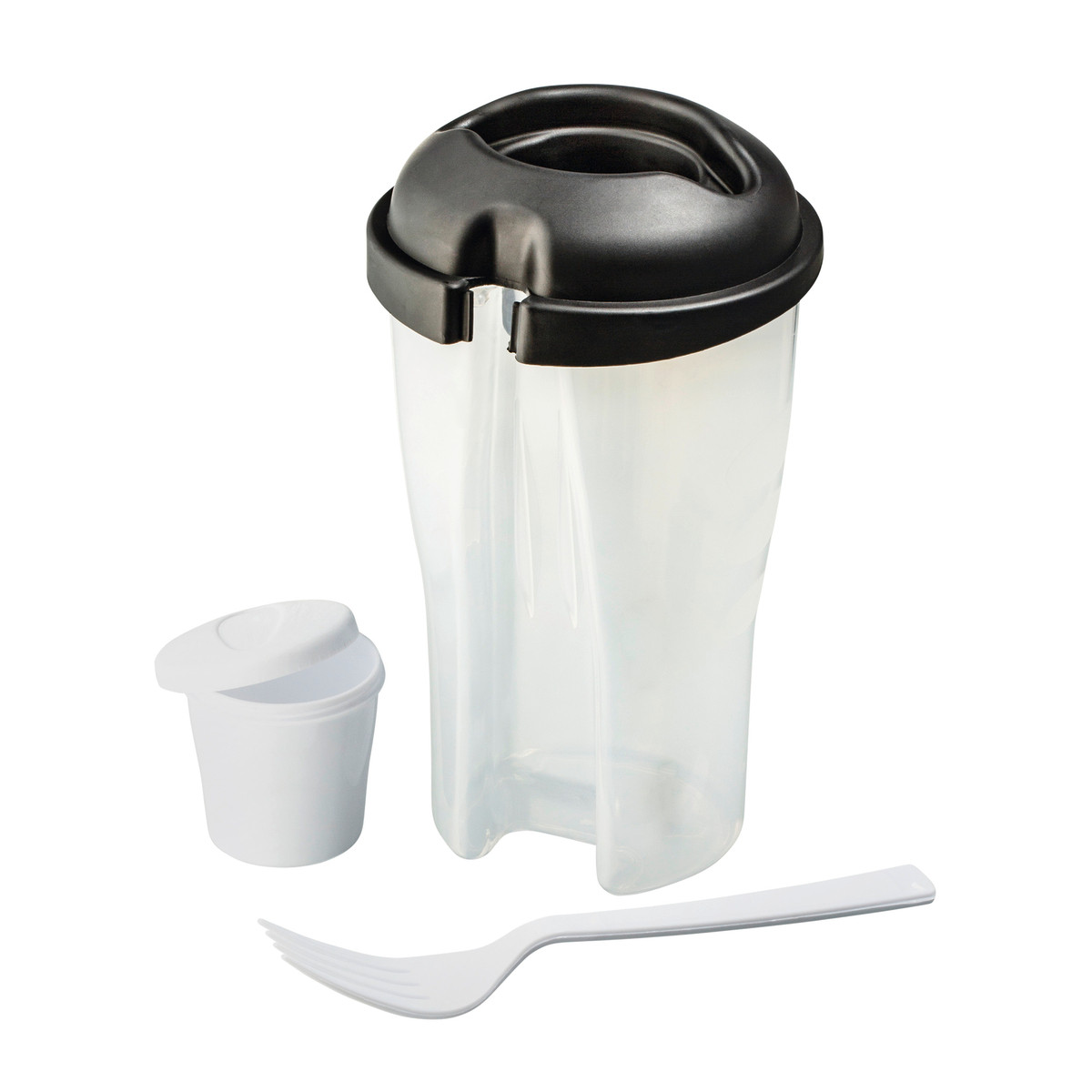 Salad to go! Transport your meal on the go in this beautiful and practical salad cup with a separate dressing container and fork.