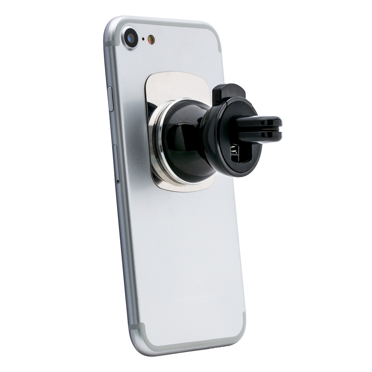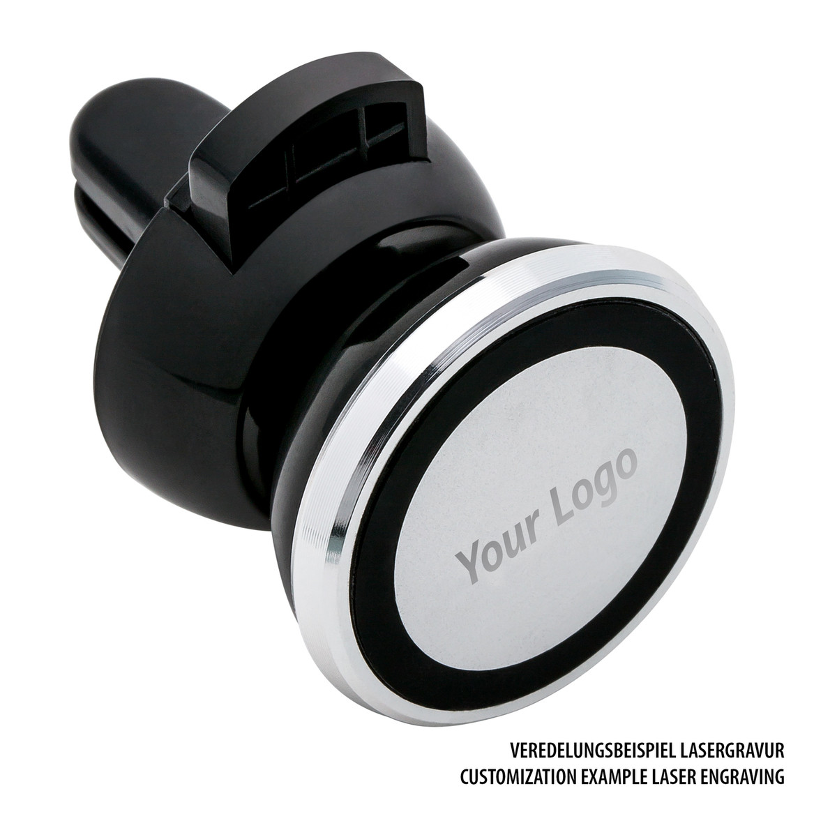 Keep an eye on your smarthone even on the road. The magnetic holder for the ventilation slot of your car disposes of a nice, centered engraving plate. By attaching the metal plate to the back of your smartphone, it can be securely attached to the holder.