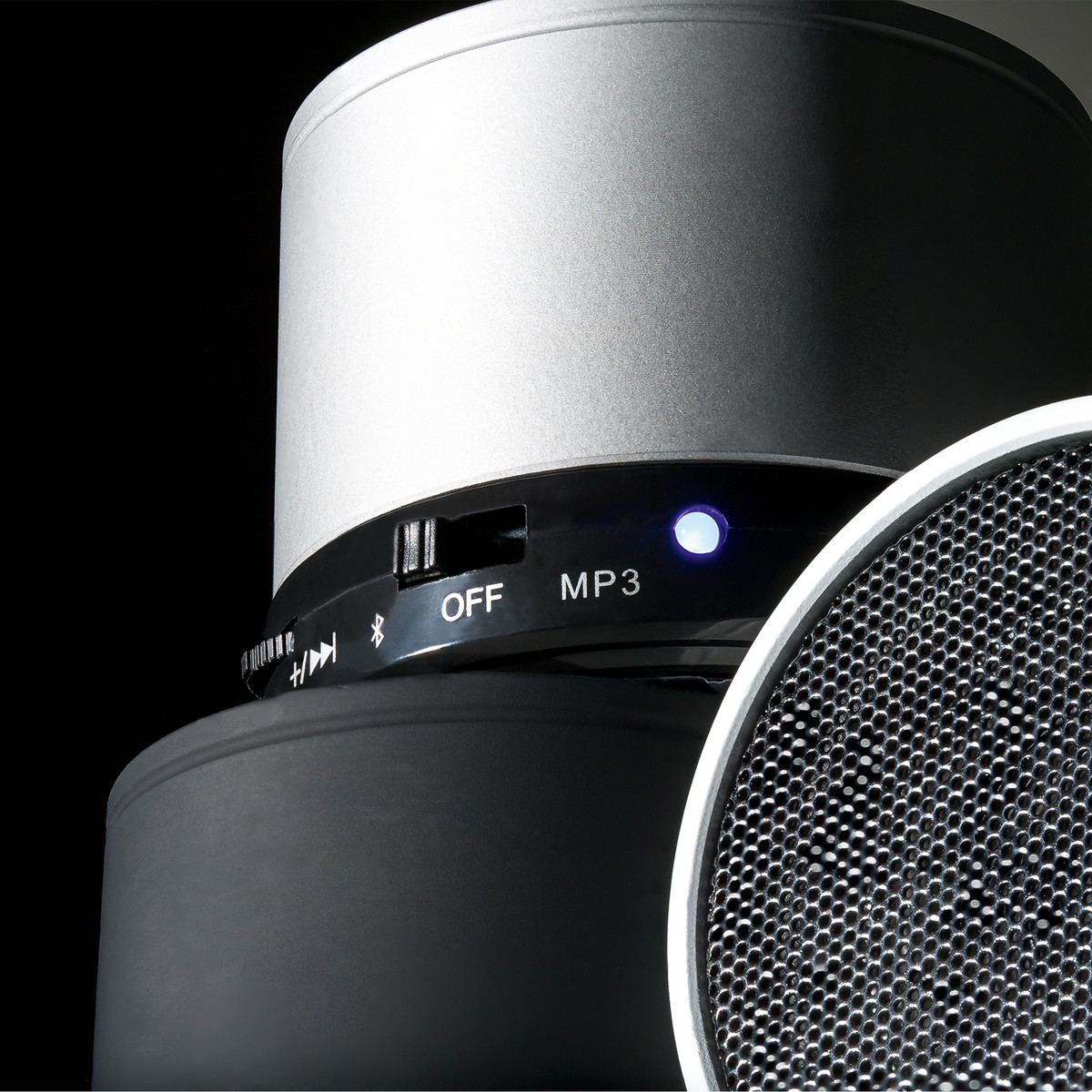 Handsome and with impressive sound quality, this handy Bluetooth® speaker with integrated FM-Radio, auto scan and mp3 function promises an amazing listening experience. The item with its high-value metal case has a card slot for TF / micro USD cards and can also be used as a hands-free facility. With a battery capacity of 450 mAh the speaker can be played for approx. 3 hours, depending on the chosen volume level. The time to reload is approx. 2 hours. Bluetooth® 4.2, incl. AUX- and charging cable.