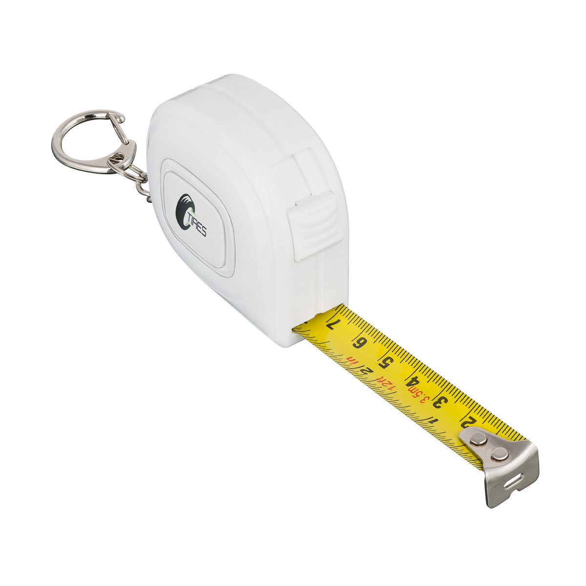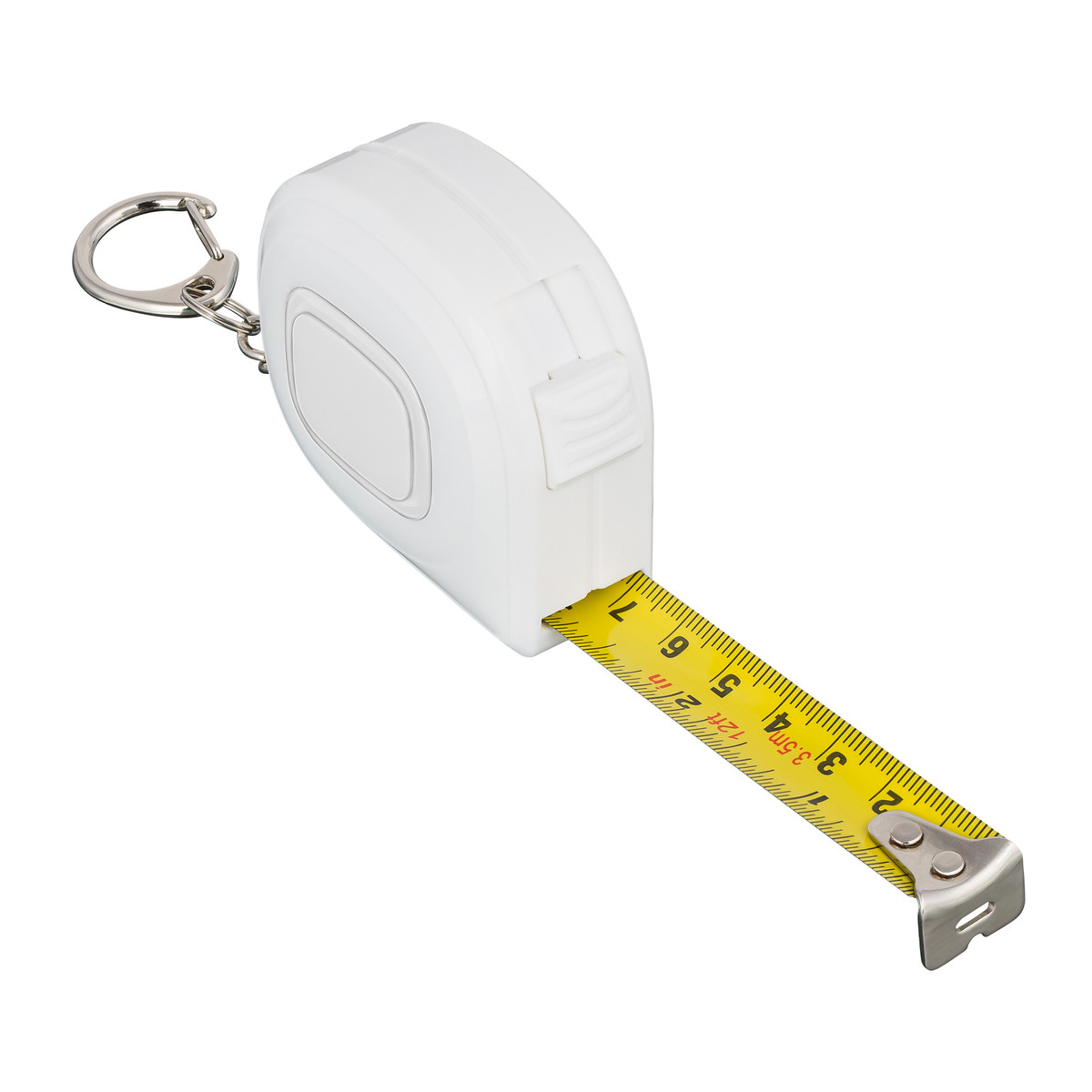The tape measure markings in centimetres and inches are easy to read. The tape measure has a carabiner clip to attach it to your key ring or waistband so that it is always within reach. It can measure up to 3.5 meter.