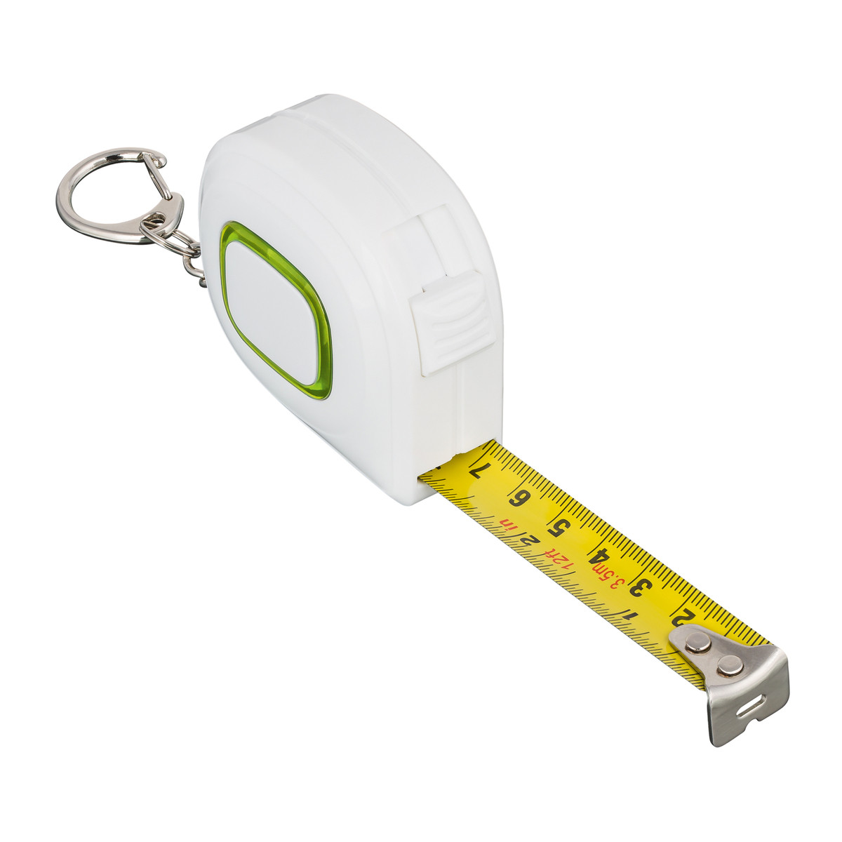 The tape measure markings in centimetres and inches are easy to read. The tape measure has a carabiner clip to attach it to your key ring or waistband so that it is always within reach. It can measure up to 3.5 meter.