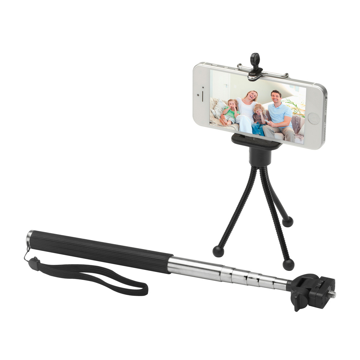- Telescopic rod with mobile phone holder (200-970 mm extendable) for shooting self-portraits