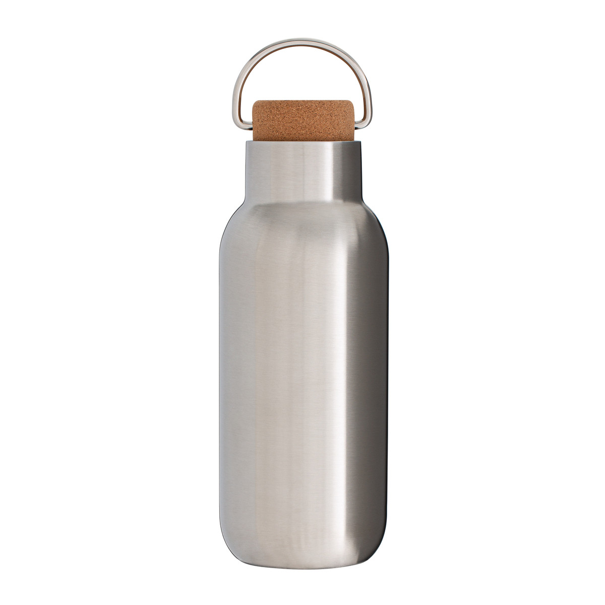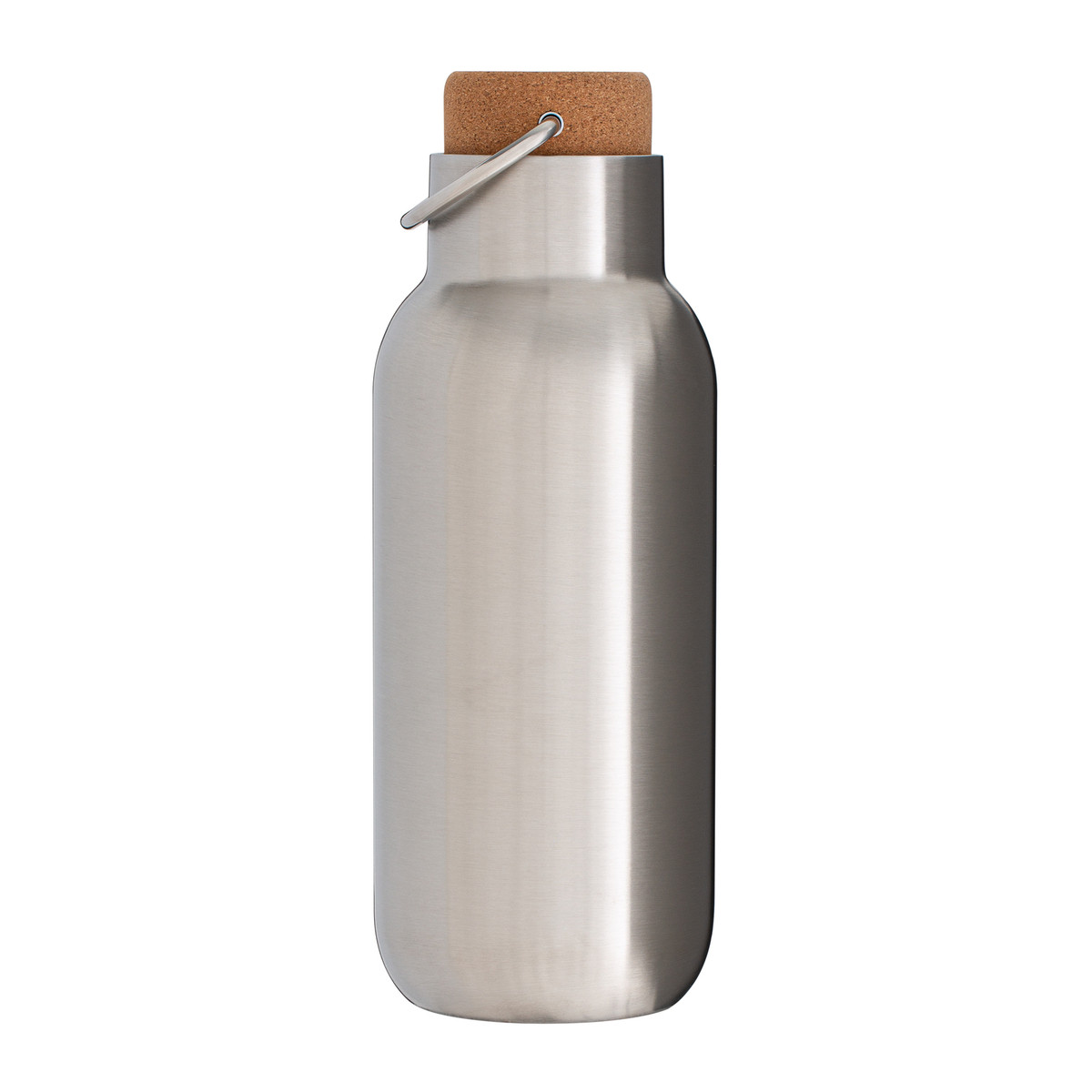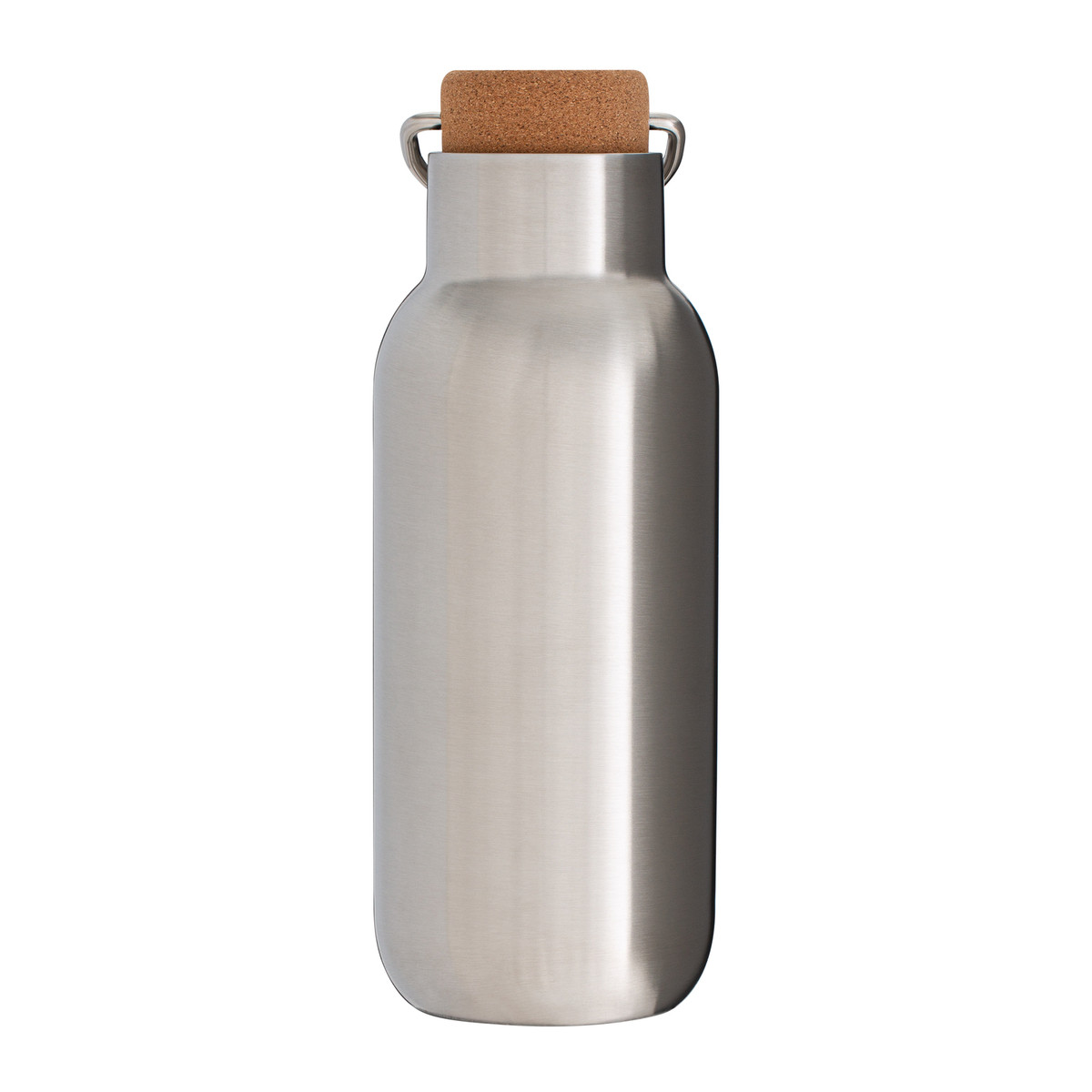 Silver 500 ml Thermo Bottle made from recycled materials with cork lid