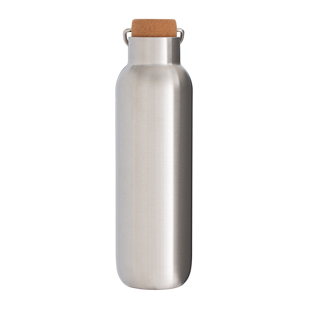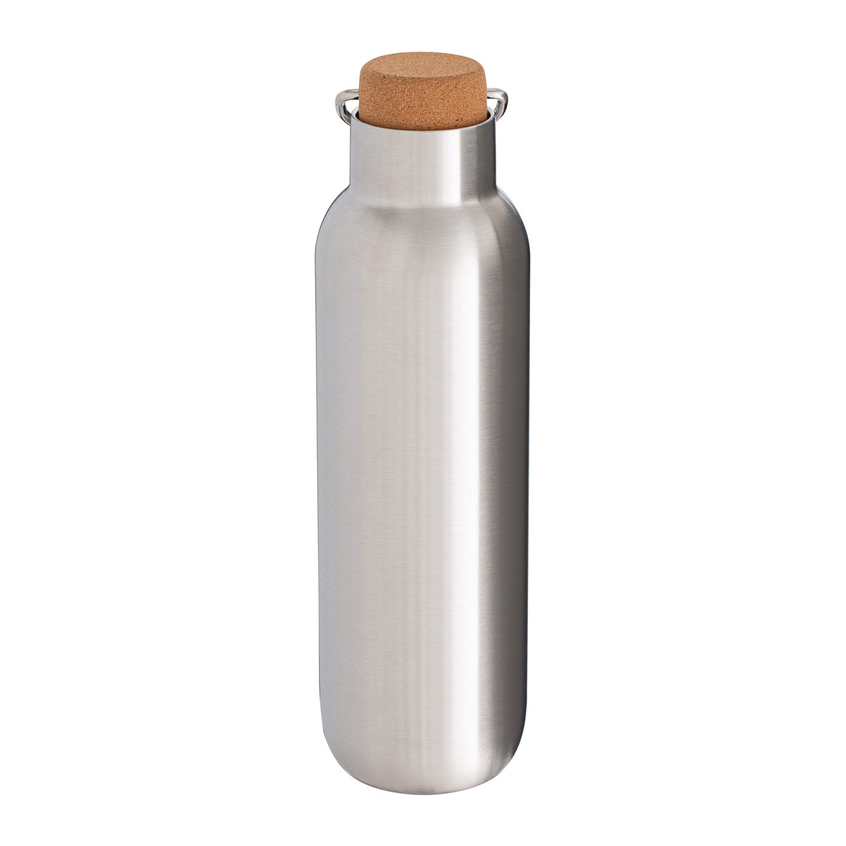 Silver 750 ml Thermo Bottle made from recycled materials with cork lid