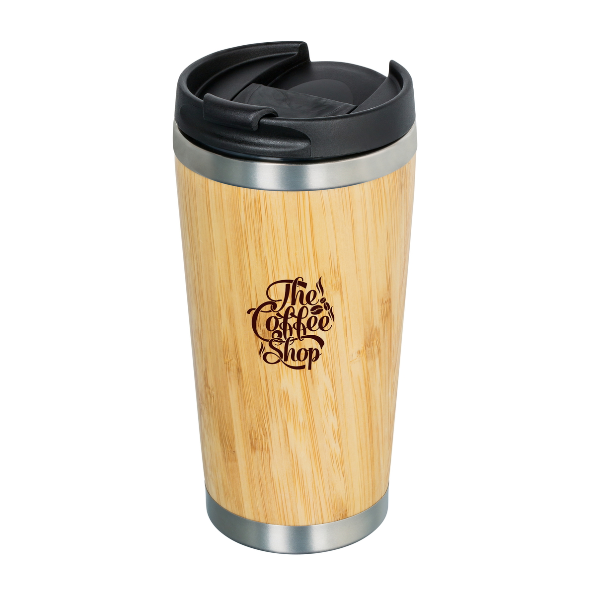 Laser engraving is especially eye catching on this insulated cup made of sustainable bamboo. It has double walls and a drinking aperture that can be closed. Capacity: 350 ml.