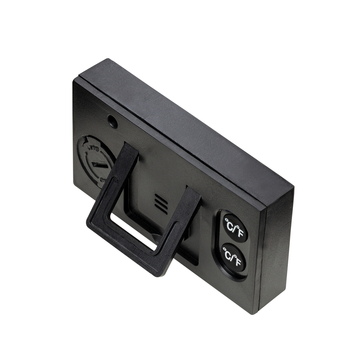 The room thermometer helps you to constantly measure the temperature of your indoor areas. You will always have the current room temperature in view with this device and so you can control your own energy consumption. The battery-operated thermometer has a measuring range between -20 and 50°C with an accuracy of +/- 1°C. The small thermometer is particularly handy and takes up very little space; however it has a large numerical display, making it easy to read. Logos and slogans can be refined on the edge of the plastic surface with pad printing. A gift box is included.Do you have any questions concerning this Thermometer REEVES-BELLERIAL black?