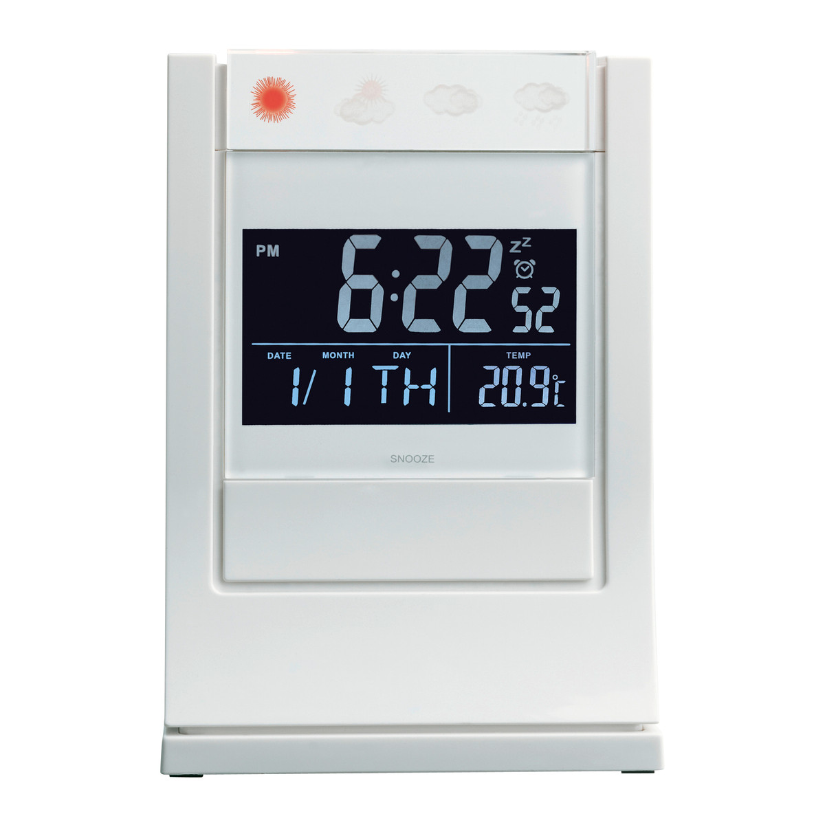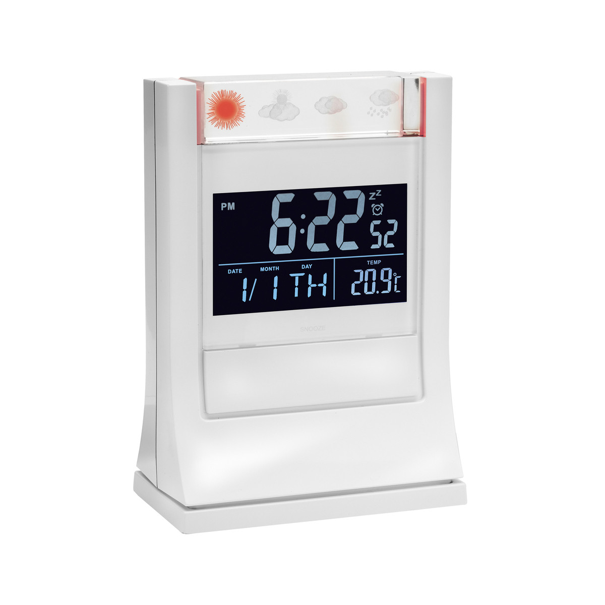 - 3-D weather symbols of this weather station light up in white, blue, red or green